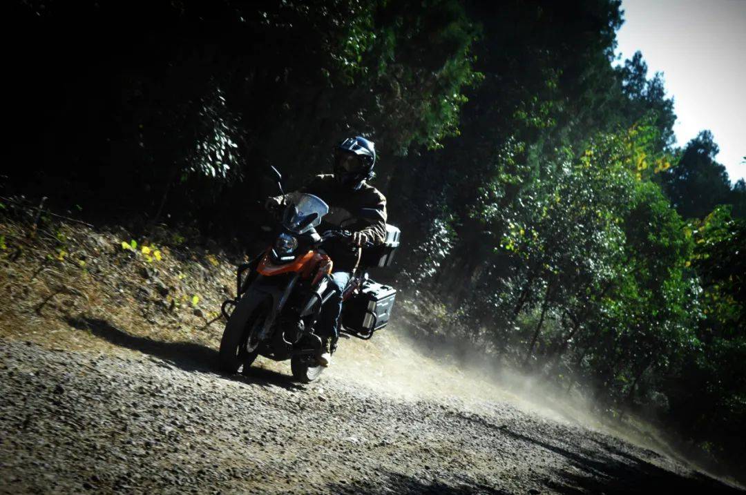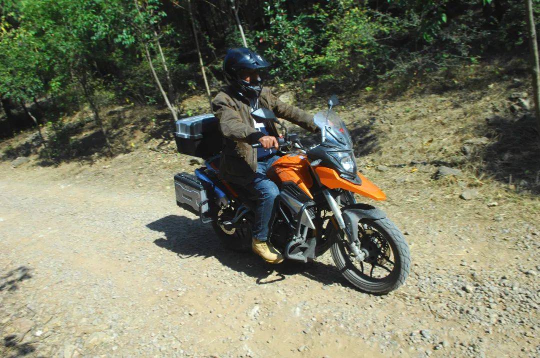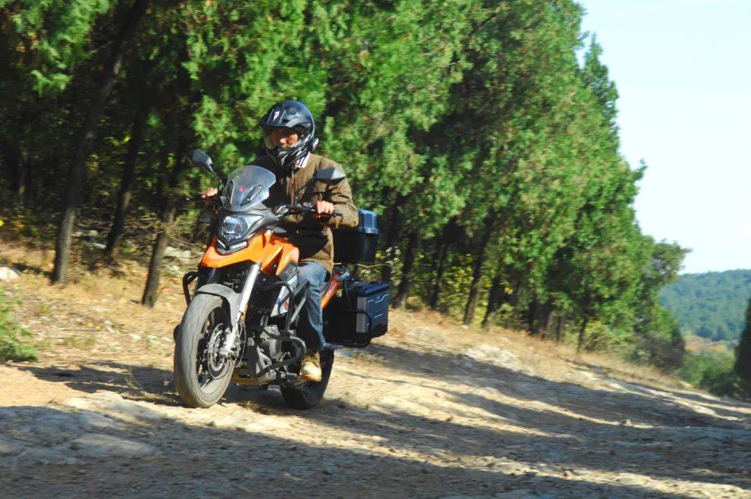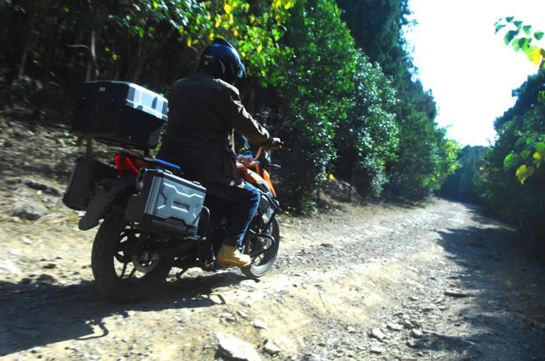 這只能算是一場“中途”旅行,再加上天氣很好,劉立建所攜帶的物品還沒裝滿三只小巧的行李箱。一圈下來,輕輕松松、舒舒服服。對騎慣了大排量單缸(現(xiàn)在的車是鈴木DR650 )車的劉立建來說,賽科龍RX1S 這臺小排量單缸在動力性能方面自然不會讓他“驚艷”,但他對這款發(fā)動機(jī)的評價也是不低的——穩(wěn)定,可靠,耐久性高。劉立建說,在山東和安徽的兩段山地穿越中,RX1S 的水冷系統(tǒng)讓發(fā)動機(jī)在低速通過碎石路和爬坡時沒有絲毫不適,更不會出現(xiàn)風(fēng)冷機(jī)常見的過熱后噪聲變大、動力衰減情況,再爛的路都能騎得有恃無恐。也就是說:路況越復(fù)雜,這款發(fā)動機(jī)的可靠性就越高。于路況莫測的長途摩旅而言,發(fā)動機(jī)的可靠與否決定著行程的成敗。尤其是該車的油耗,此行的百千米綜合油耗保持在了2.3L 以下,配合14L 的油箱,續(xù)航能力可觀。