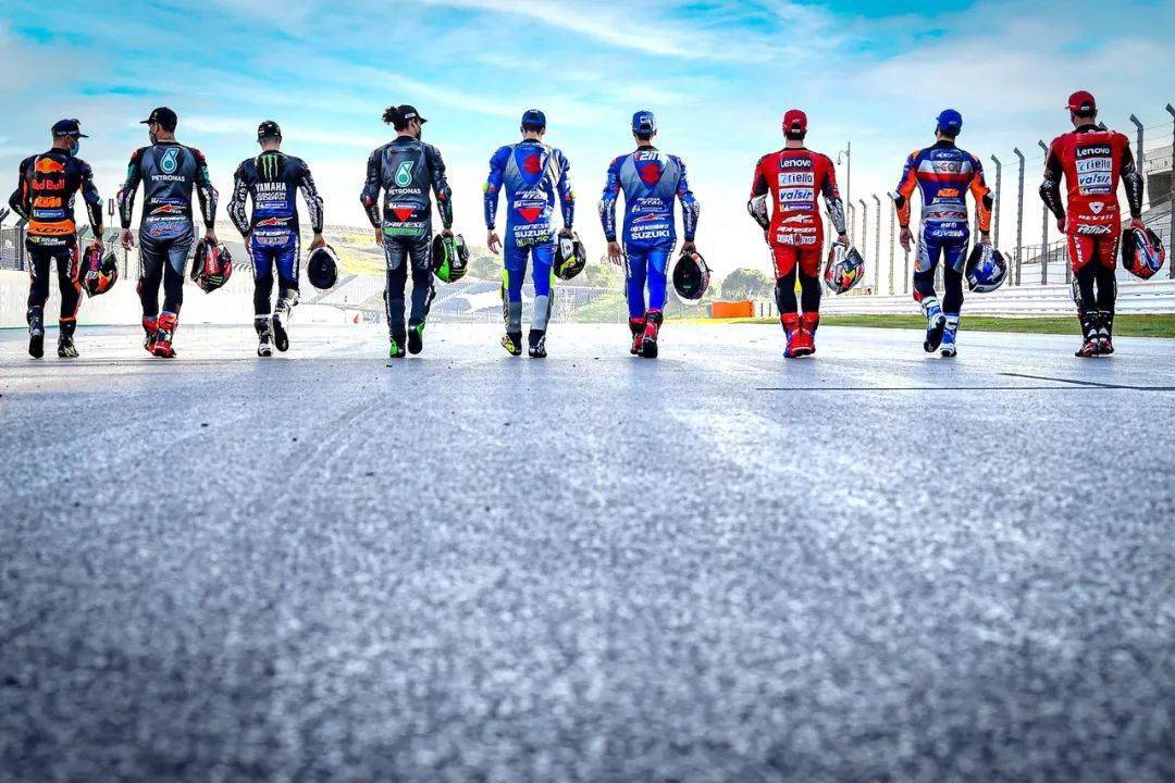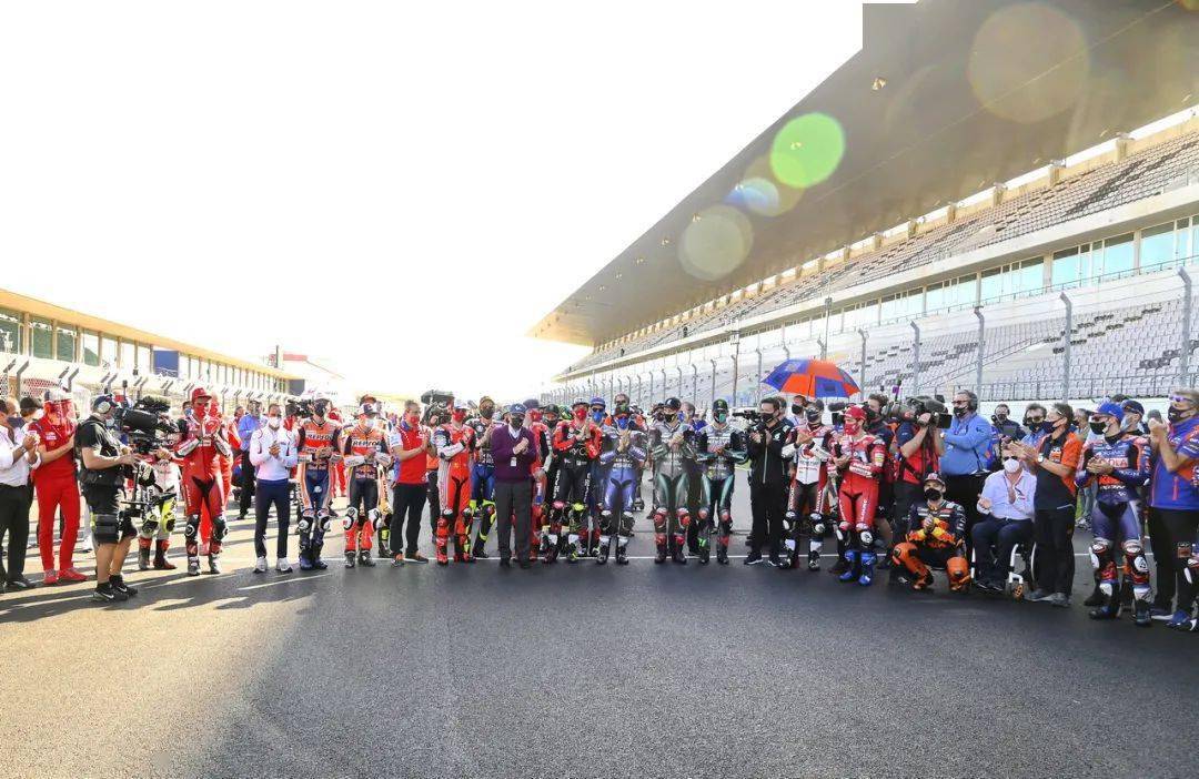 下面的圖片,MotoGP 葡萄牙站開賽前夕,MotoGP 級別車手、向努力為賽事順利舉行而進行了大量工作的賽會致謝。