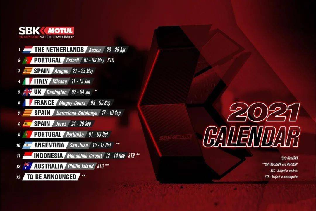 2021 WSBK世界超級摩托車錦標——暫定賽程表