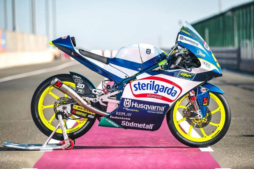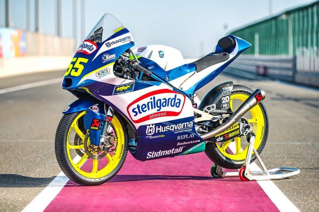 下面的圖片,參加 2020 賽季 Moto3 級(jí)別比賽的 Husqvarna 胡斯瓦那 FR250GP 賽車。