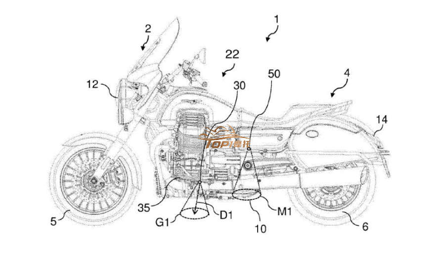 比亞喬(Piaggio)的新專利中顯示的系統(tǒng)顯示出對該想法的不同看法,第一個設計是一種適用于類似重型Moto Guzzi旅行車的系統(tǒng),也可以應用于任何大排量摩托車。該系統(tǒng)包括兩套燈,其中一盞燈照亮騎手的腳踏板下方的地面,另一盞燈照亮乘客的下方。在這種情況下,照明燈不僅可以讓你檢查腳下的情況,還可以使騎手在打開邊撐之前檢查地面的狀況!