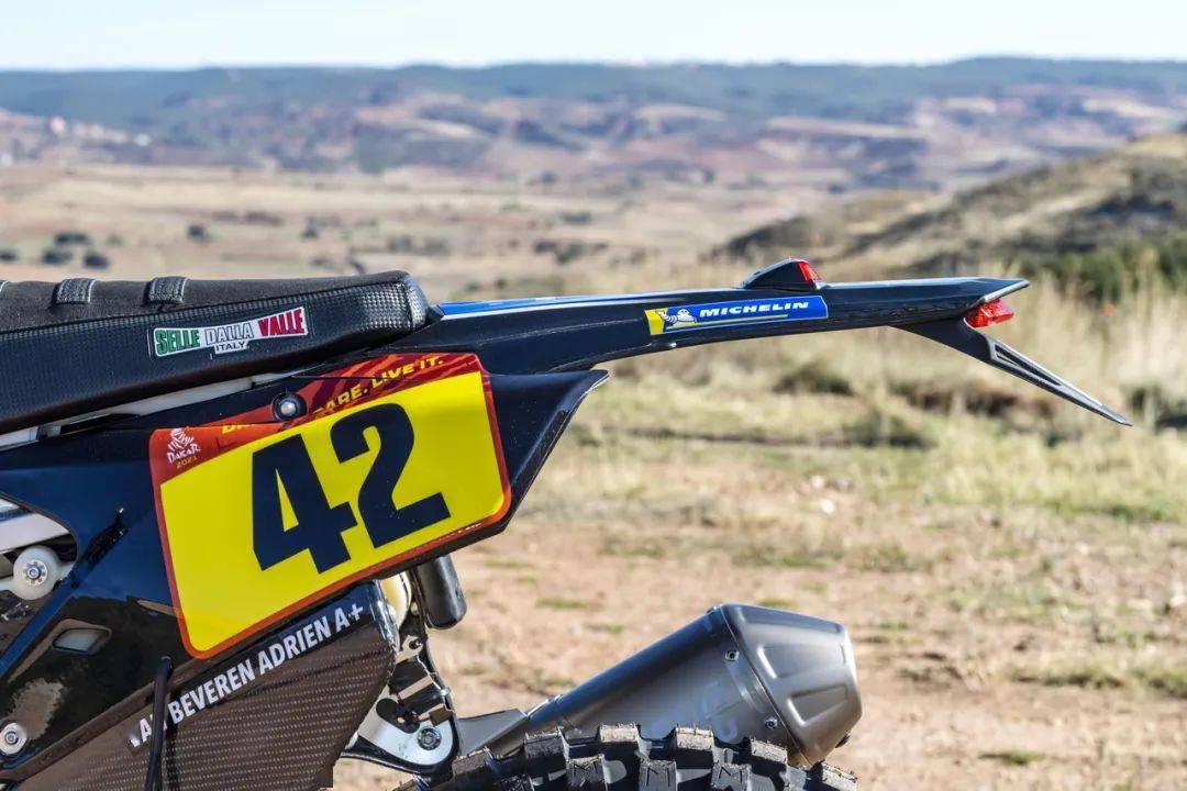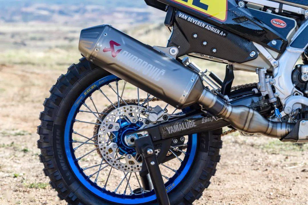 懸掛系統(tǒng)來(lái)自 KYB 所開(kāi)發(fā)的組件,前制動(dòng)系統(tǒng)則來(lái)自 Brembo 布博。為了確保賽車(chē)的輕量化,WR450 Rally 采用了 Akrapovic “ 蝎子 ” 的鈦合金排氣系統(tǒng),在提高了動(dòng)力輸出表現(xiàn)的同時(shí)、該系統(tǒng)還降低了車(chē)輛的重心。此外,WR450F Rally 的每個(gè)零件均經(jīng)過(guò)優(yōu)化以減輕重量,全車(chē)的干燥重量?jī)H有 142 kg。