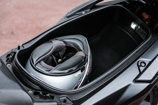 受限于中置發(fā)動(dòng)機(jī)的布局,和運(yùn)動(dòng)型的設(shè)計(jì),座桶空間并沒(méi)有特別的大,只能放進(jìn)去一頂全盔和一頂半盔,如果對(duì)空間有較大需求,只能選擇加裝尾箱擴(kuò)充容量。