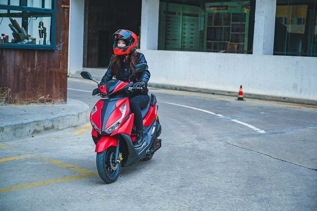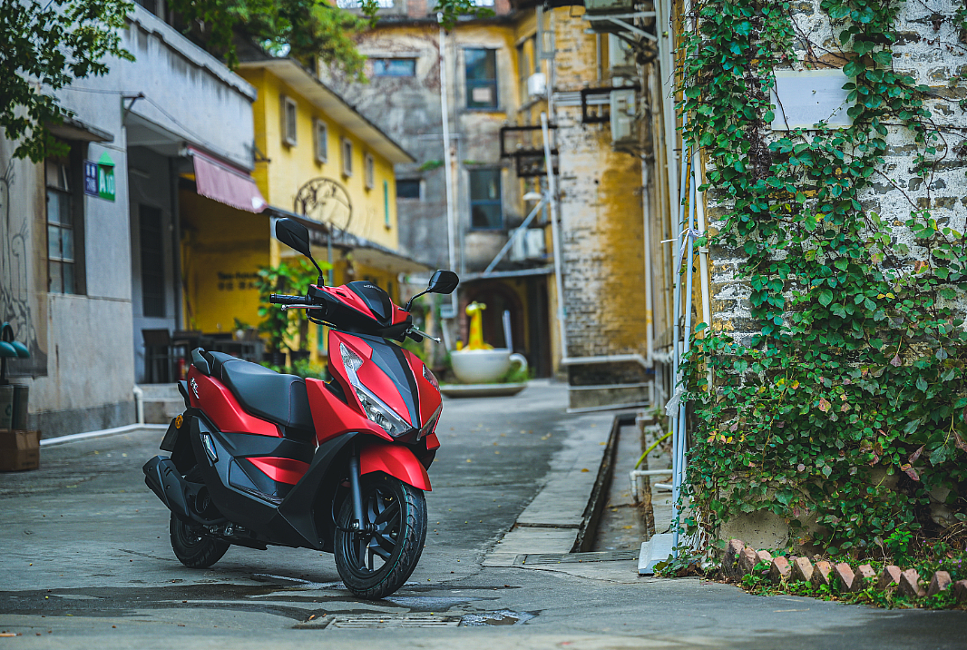 順德的各個(gè)美食和打卡點(diǎn)遍布在大街小巷,且道路交通狀況較為擁擠,選擇摩托車前往會(huì)比騎車更加高效,能節(jié)省不少時(shí)間和體力。但漂亮的小姐姐加上外觀潮酷的NX125,銳利靈動(dòng)的LED前大燈和位置燈個(gè)性十足,菱形的運(yùn)動(dòng)尾燈設(shè)計(jì)極富立體層次感、棱角分明,讓它在車流中每時(shí)每刻都能成為聚集視線的焦點(diǎn)。