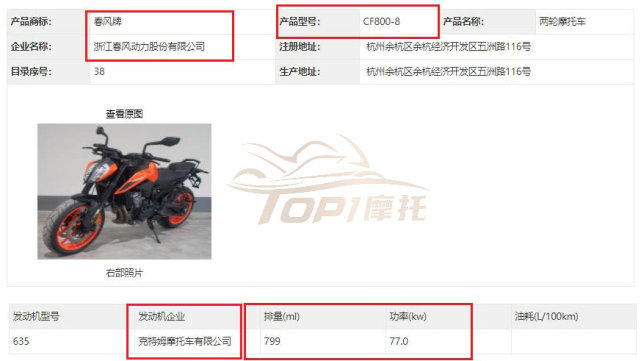 新車爆料:國產(chǎn)790Duke 春風1250TRG 申報完畢