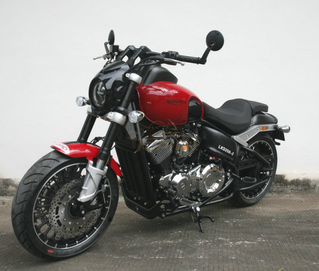 這個(gè)250看起來(lái)有點(diǎn)意思啊,這個(gè)外觀不像是250這種小排量,發(fā)動(dòng)機(jī)艙也非常的飽滿,外觀有點(diǎn)哈雷的味道,發(fā)動(dòng)機(jī)是力帆的V型雙缸發(fā)動(dòng)機(jī),最大輸出13Kw,采用皮帶傳動(dòng)。如此龐大的氣勢(shì),帶來(lái)了高達(dá)220kg的整備重量,這么小的動(dòng)力能帶的動(dòng)嗎?