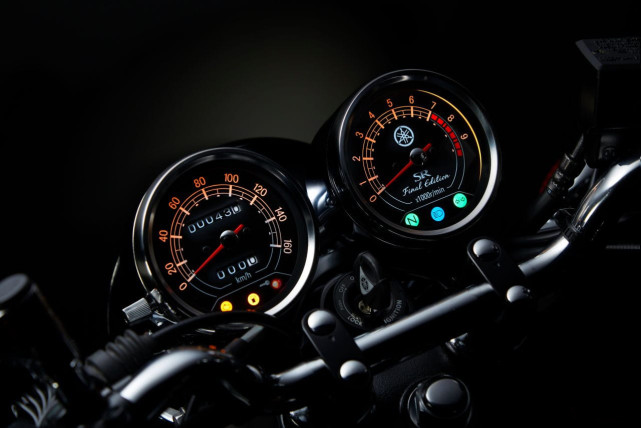 “ SR 400 Final Edition Limited”采用了“黑色”為主色調(diào),這一點已受到許多SR粉絲的喜愛。限量版采用手工繪制的森伯斯特繪畫油箱,帶序列號的電動鑄造標(biāo)志,真皮座椅,帶有“最終版”的黑色表盤等。