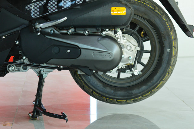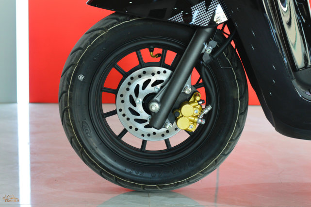 菲諾125底盤方面的配置中規(guī)中矩,正立式前叉搭配單側(cè)單筒的后避震;前單通風(fēng)盤+雙活塞的剎車卡鉗,后剎車為傳統(tǒng)的鼓剎形式,因此并沒(méi)有配備ABS防抱死系統(tǒng),這也算是一個(gè)遺憾,希望廠家后期能夠推出ABS或CBS的版本。
