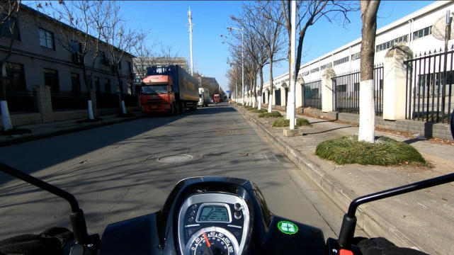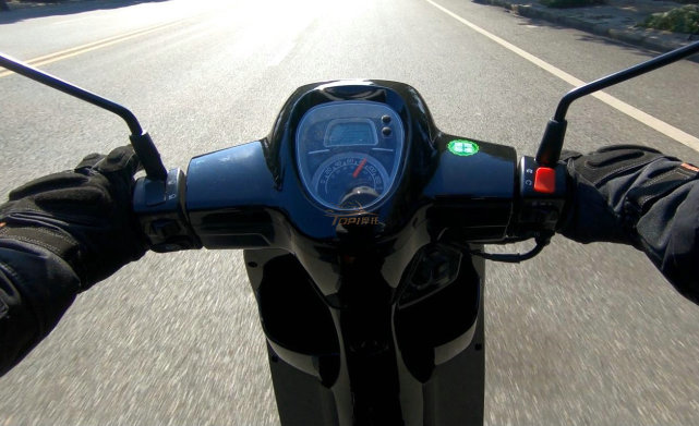 雖不能在晚上進(jìn)行測(cè)試,但是打開(kāi)遠(yuǎn)光燈之后亮度依然十分刺眼,在這種以通勤為主的代步踏板上足夠用了。