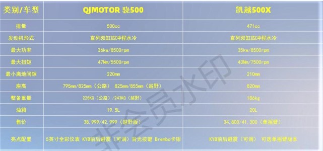中量級拉力摩托車,是國內摩托市場上競爭非常激烈的細分類別,在500cc左右的車型當中,也有幾款不錯的國產(chǎn)車型可以選,當下比較熱門的兩款具有較高性價比的車型。一款是QJMOTOR驍500,另一款是凱越500X,這兩款車都是以高配置和性價比著稱,他們之間的對比結果會怎么樣呢。