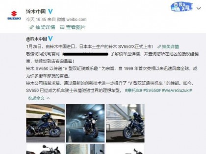 核心提示:沒有召開盛大的發(fā)布會,向來低調(diào)的鈴木今天下午突然宣布SV650國內(nèi)售價,SV650售價85,800元,SV650X售價92,800元。比上一次引進時
