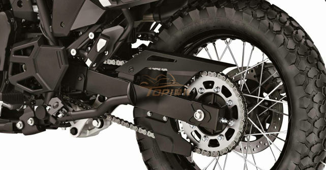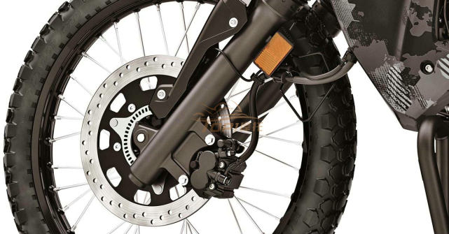 新款車(chē)型前剎車(chē)升級(jí)為300mm(之前為254mm),后剎車(chē)盤(pán)更厚并且也像前剎車(chē)盤(pán)一樣取消花瓣盤(pán)的設(shè)計(jì)。前輪和后輪分別為21英寸和17英寸,后輪的耐用性比以前更強(qiáng)。條幅輪的輪胎并非真空,而是配備了內(nèi)胎,ABS作為選裝件提供,可用于越野設(shè)置。