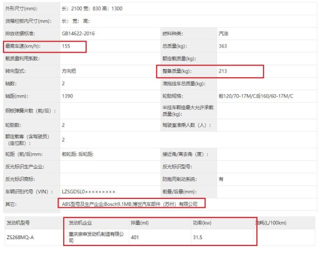 申報數(shù)據(jù)當(dāng)中顯示,整備重量149kg,而之前公開的是干重147kg,整備重量150kg,另外申報數(shù)據(jù)當(dāng)中的最大功率為29kw,之前公布的數(shù)據(jù)為30.5kw。該車配備的ABS是由賽福提供,廠家給出的極速數(shù)據(jù)為170km/h。