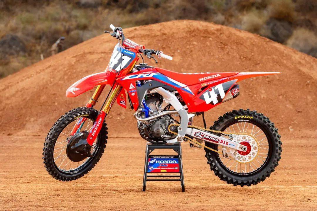 在 450 SX/MX 級別,Honda AMA 工廠車隊使用的是以市售越野賽車 CRF450R 為基礎(chǔ)改裝而成的 CRF450RW。