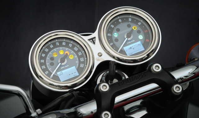 T100還配備了規(guī)格更高的不可調(diào)節(jié)41mm前叉,后懸架保持雙預(yù)緊力可調(diào)節(jié)的功能,T120上的Brembo卡鉗和310mm制動盤也配備在T100上。 該車外觀也發(fā)生了一些變化,包括新的儀表盤、引擎蓋和凸輪蓋涂黑。Bonneville T100新款起售價為10,500美元。