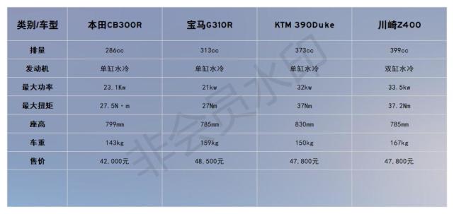 本田CB300R進(jìn)來之后,會直接與現(xiàn)有的“三劍客”形成直接競爭的關(guān)系。包括寶馬的G310R、KTM的390Duke、川崎的Z400。但是CB300R是它們幾個當(dāng)中價格最便宜的,而且同樣為純進(jìn)口車型,有不少人覺得CB300R很香,很大一部分原因為這一次本田并沒有把價格定的高高在上。