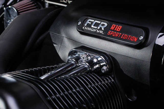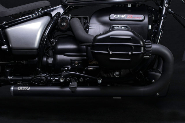 對(duì)于FCR來(lái)說(shuō),這是一種不尋常的方法,他們通常會(huì)選擇經(jīng)典的鍍鎳復(fù)古風(fēng)格,但是寶馬已經(jīng)在R18上采用了這種手法。定制R18的一大變化是新的排氣管,實(shí)際上是直通的排氣,據(jù)說(shuō)對(duì)聲浪有很大提升。