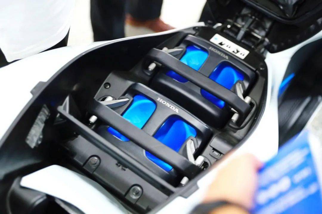 下面的圖片,Honda 推出的、采用了可快速抽取式電池設計的 PCX 電動版(資料圖片)。