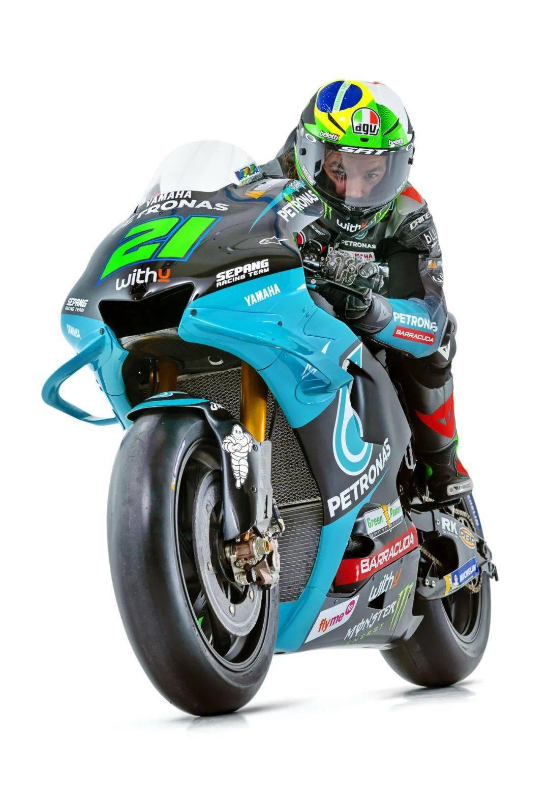 三月 1 日,Yamaha 的 MotoGP 衛(wèi)星車隊 —— 馬國油 SRT(Petronas Sepang Racing Team,馬來西亞國家石油雪邦車隊),率先發(fā)布了 MotoGP 級別的 2021 賽季新圖案(馬國油 SRT 同時參加 MotoGP 三個級別的比賽)。