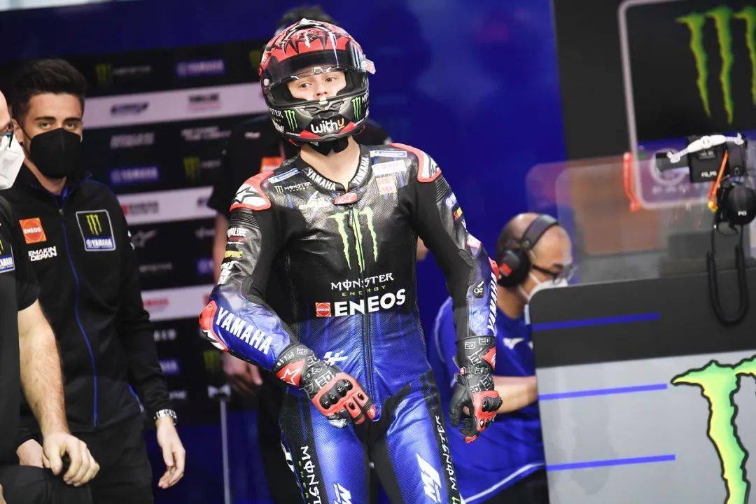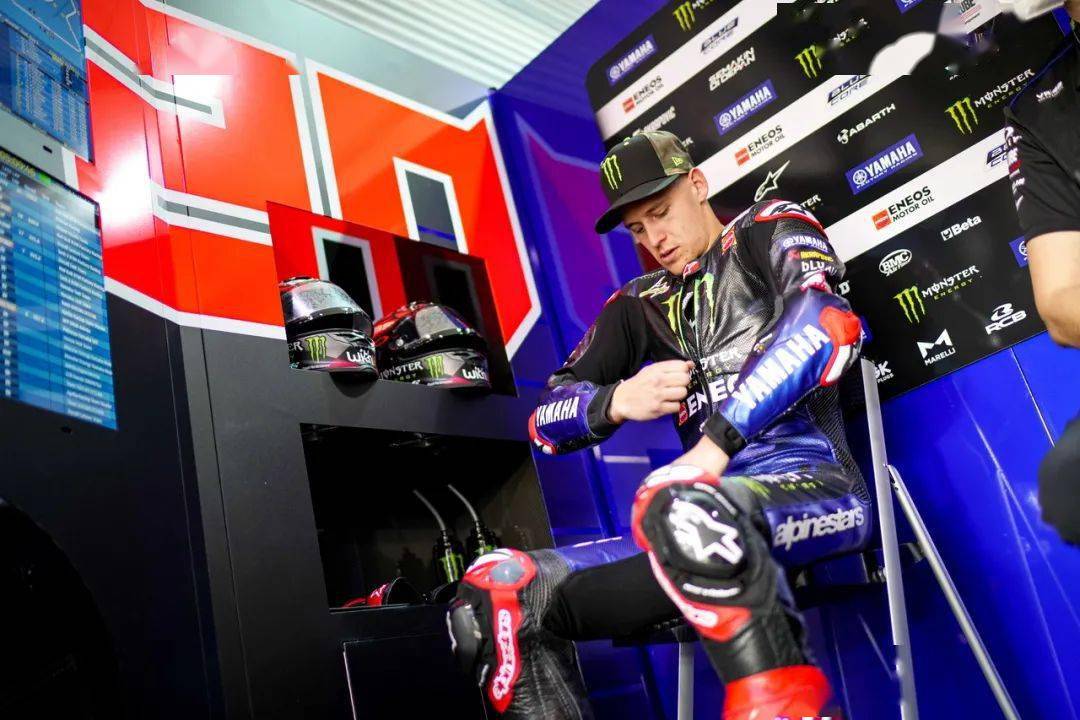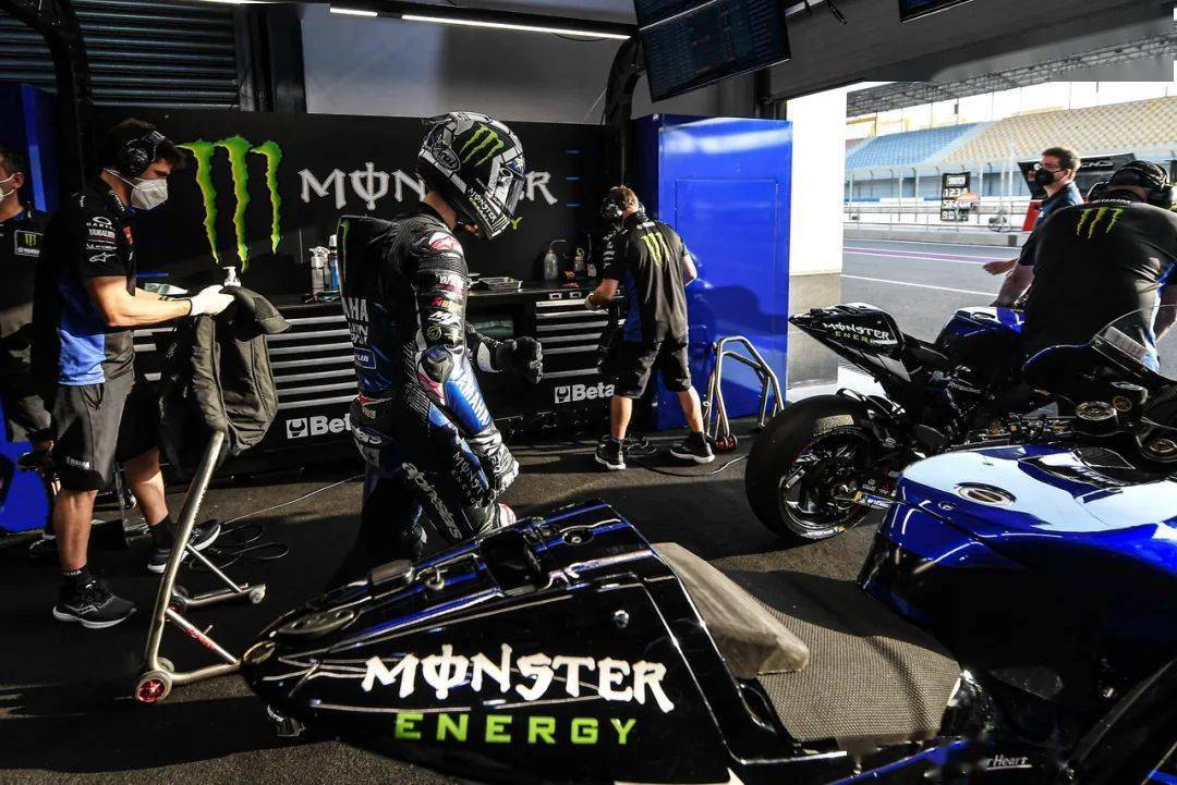 工廠車隊,12 號車、來自西班牙的維尼艾利(Maverick Vinales),和 20 號車、來自法國的夸塔拉羅(Fabio Quartararo),在賽場里對工廠賽車 YZR-M1 進行試騎。