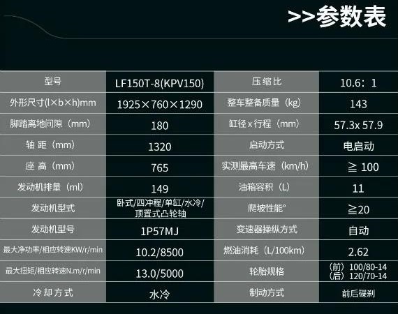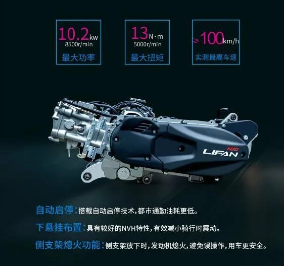 動力平臺和配置我們已經(jīng)非常熟悉了,150cc的水冷單缸發(fā)動機,最大功率10.2kw/8500rpm,最大扭矩13Nm/5000rpm,配備自動啟停技術,側(cè)撐熄火功能。