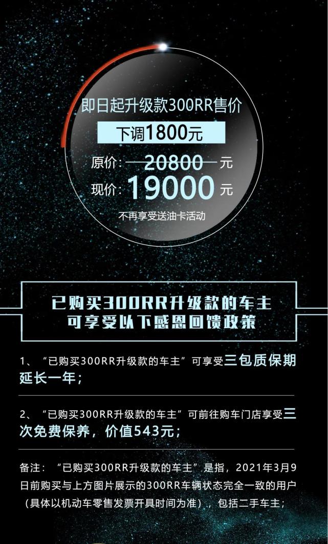 19000!元無(wú)極300RR官降1800元 降價(jià)潮還要繼續(xù)