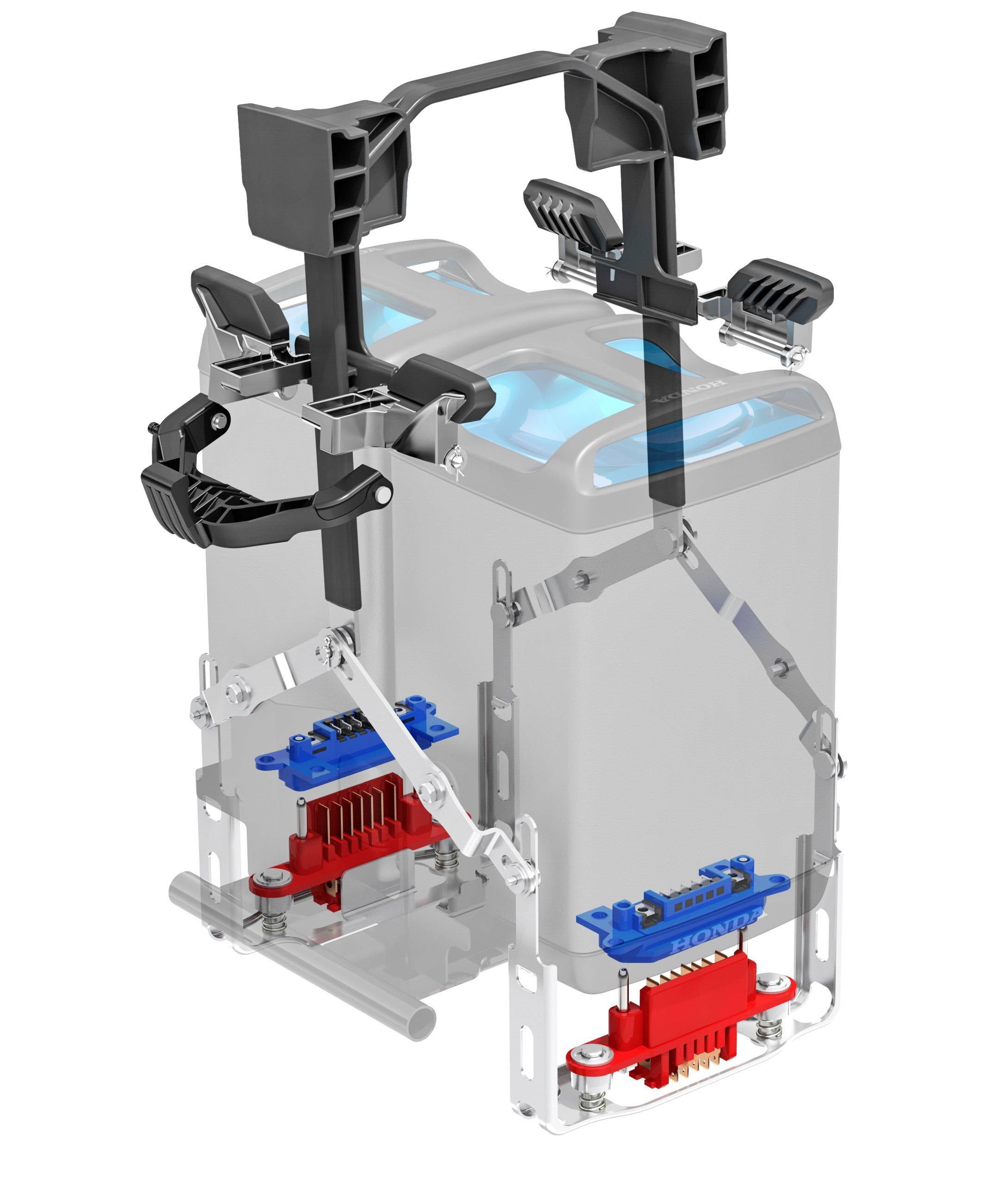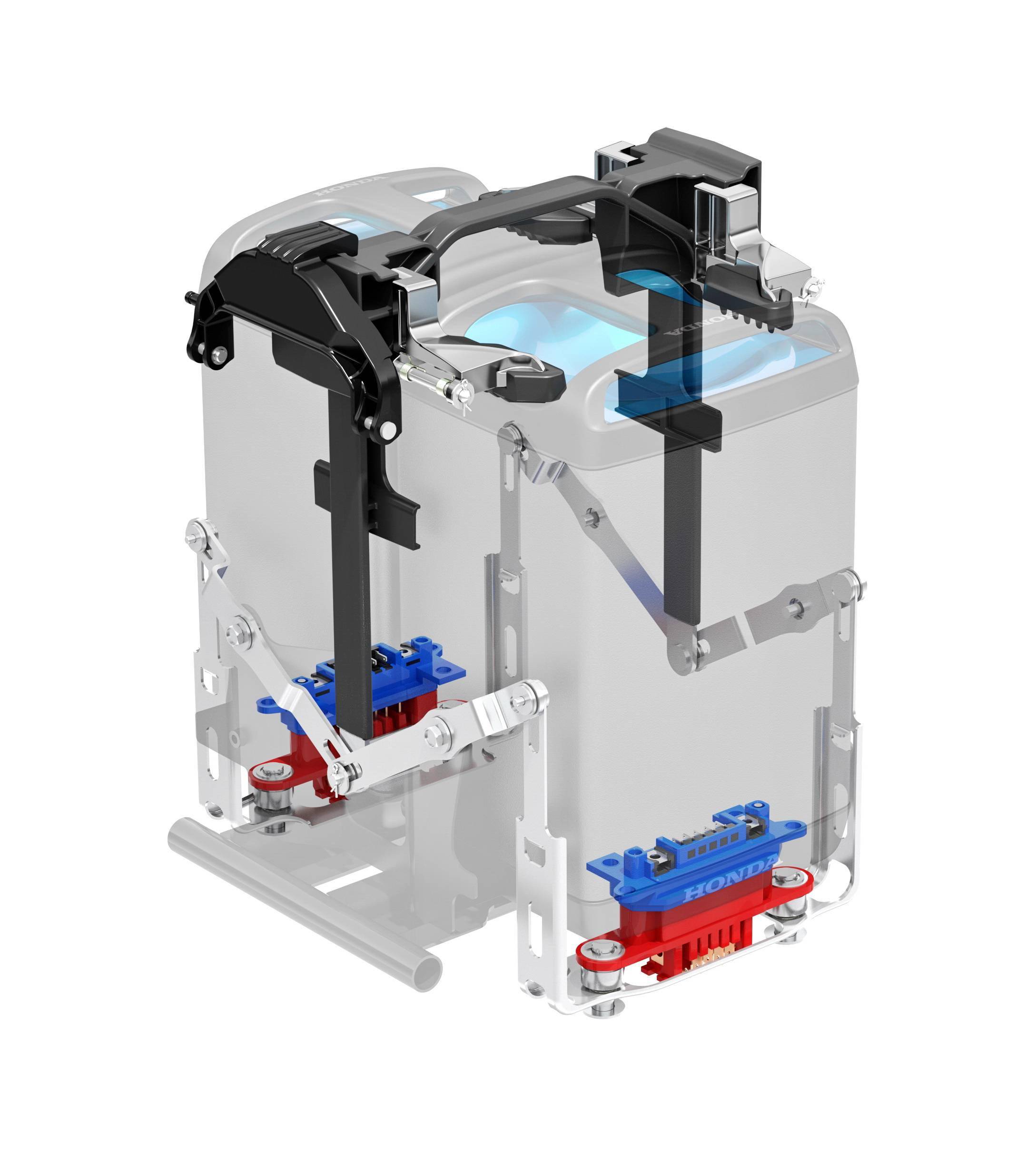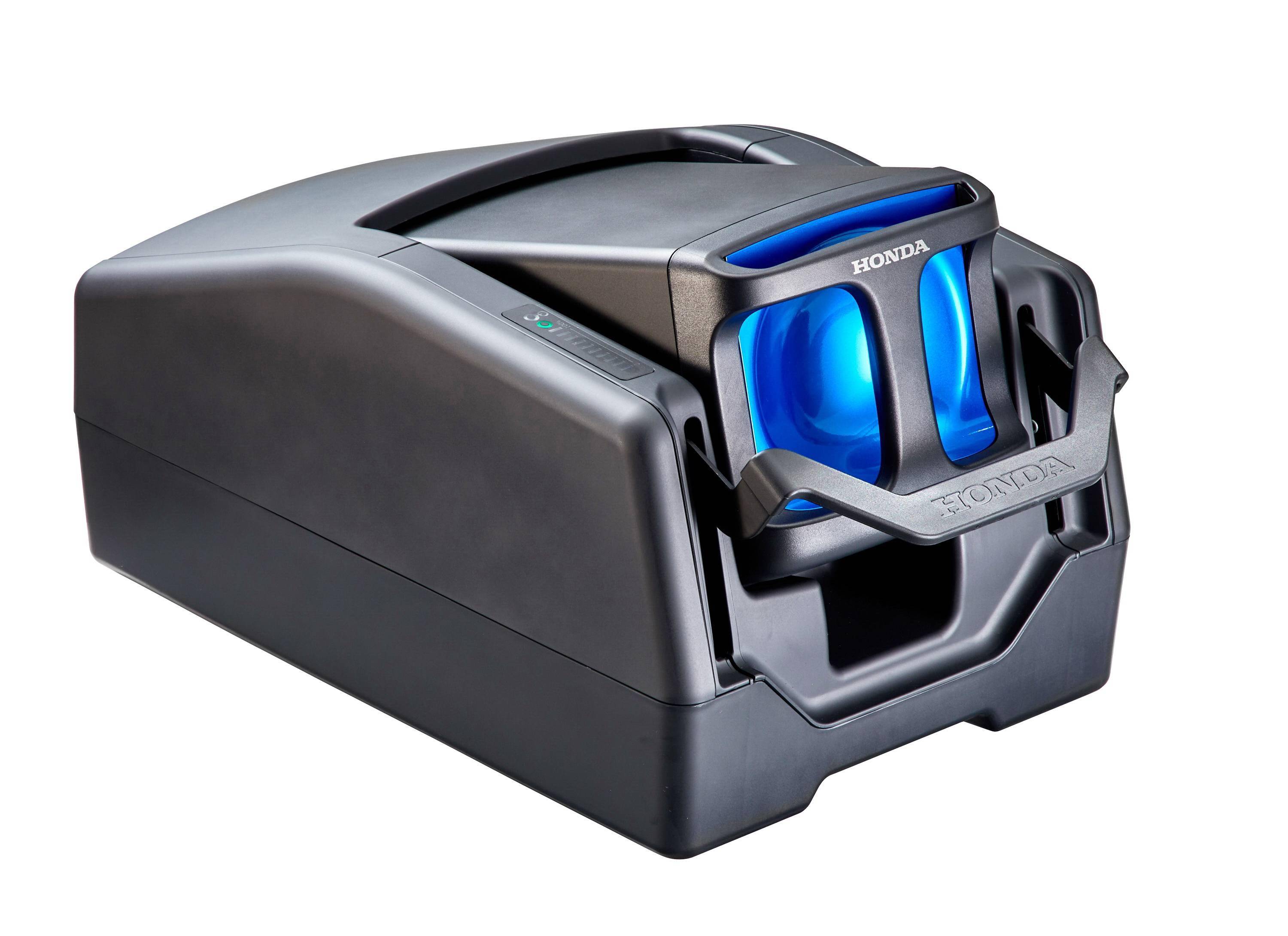 下圖:GYRO e 上所使用的 Honda Mobile Power Pack 可移動(dòng)電池組和充電器。
