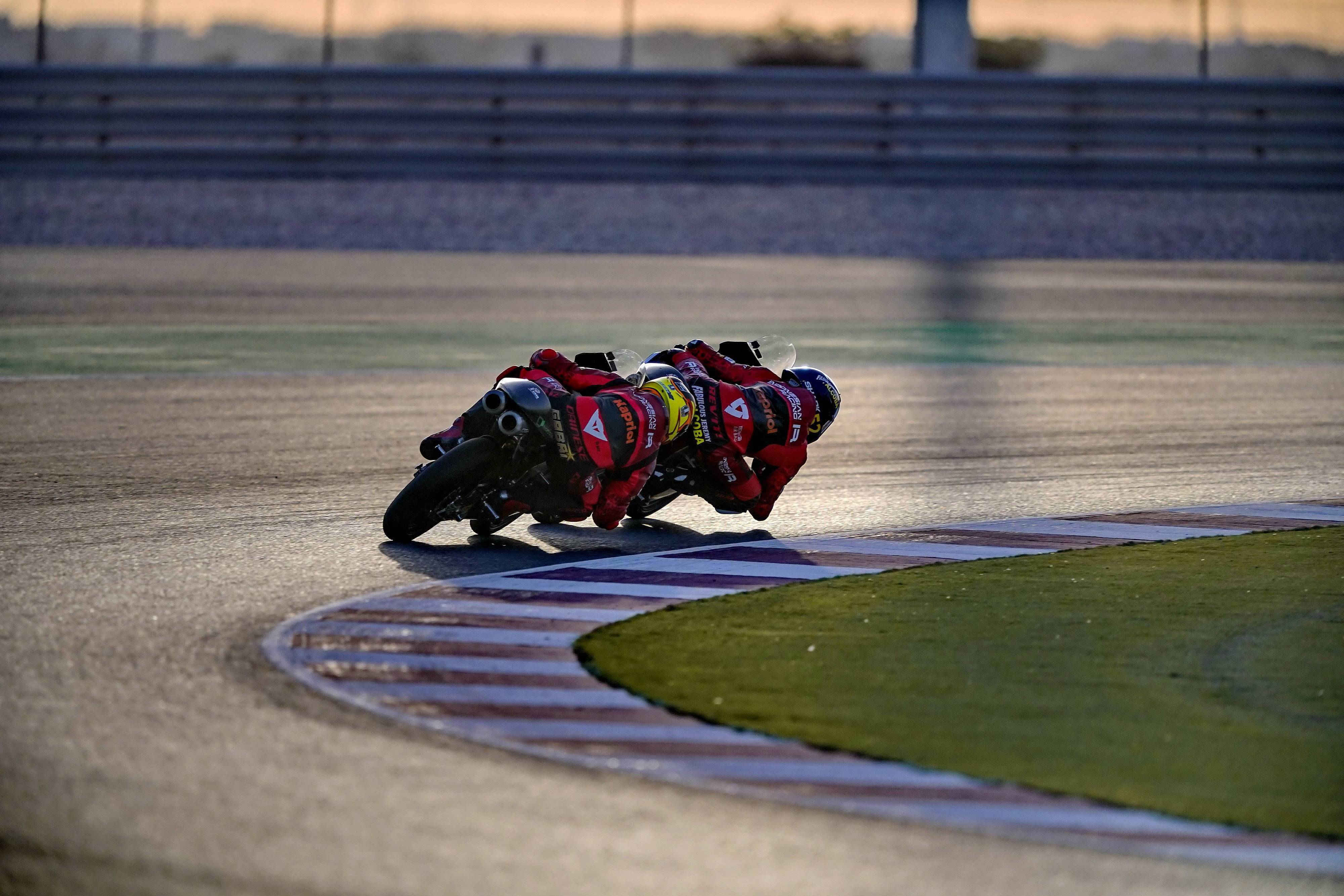在上星期(三月 19 - 21 日)洛塞進(jìn)行的、為期三天的 IRTA(國際車隊(duì)聯(lián)盟)Moto2、Moto3 級(jí)別季前測試中,福建友力企業(yè)所支持的吉斯尼 Moto3(Gresini Moto3)車隊(duì),兩位車手 ——駕駛 2 號(hào)車的羅德里戈(Gabriel Rodrigo)和駕駛 52 號(hào)車的阿科巴(Jeremy Alcoba),在總共九節(jié)的測試中,兩人的最快圈速一起跑進(jìn)了 2 分 04 秒。而突破 2 分 04 秒、可以是在洛塞爭奪領(lǐng)獎(jiǎng)臺(tái)的基本要求(Moto3 在洛塞跑道的最快圈速記錄是 2 分 04.561 秒)。