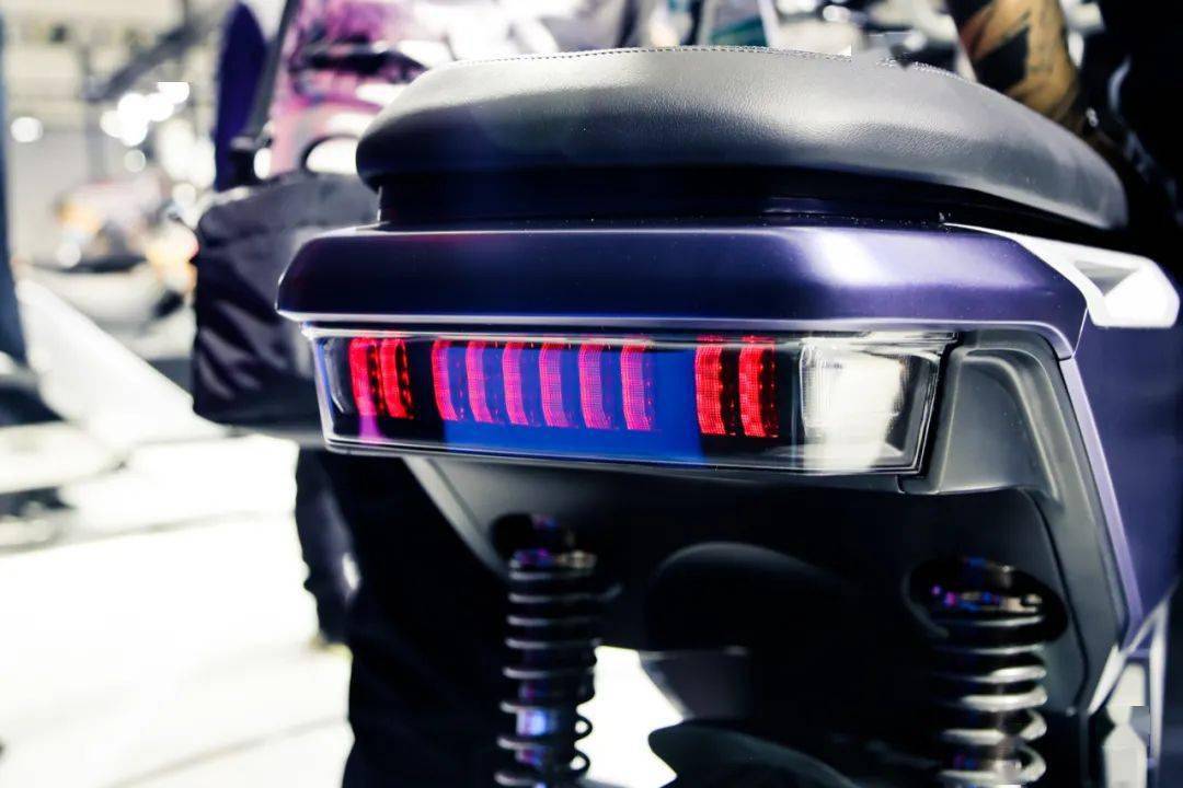 其他配置上,E5的燈光配置為前后LED燈組。前大燈為三透鏡燈組,光感自動調(diào)節(jié)光照高度。大燈兩側(cè)各一條日行燈+示寬燈組合,尾燈為貫穿式燈帶。輪胎規(guī)格為前14寸110mm,后13寸130mm,帶胎壓監(jiān)測系統(tǒng)。制動系統(tǒng)為前后單碟,配雙通道ABS。儀表為6.8寸IPS液晶屏,有多種UI界面可選擇。