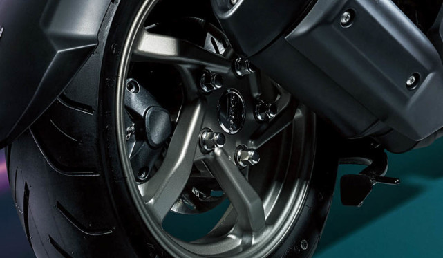單擺臂結(jié)構(gòu)的后輪,漂亮的輪轂也被凸顯出來,雖然輪子比較小,但是勝在質(zhì)感出色,與整車的設計風格也很搭。