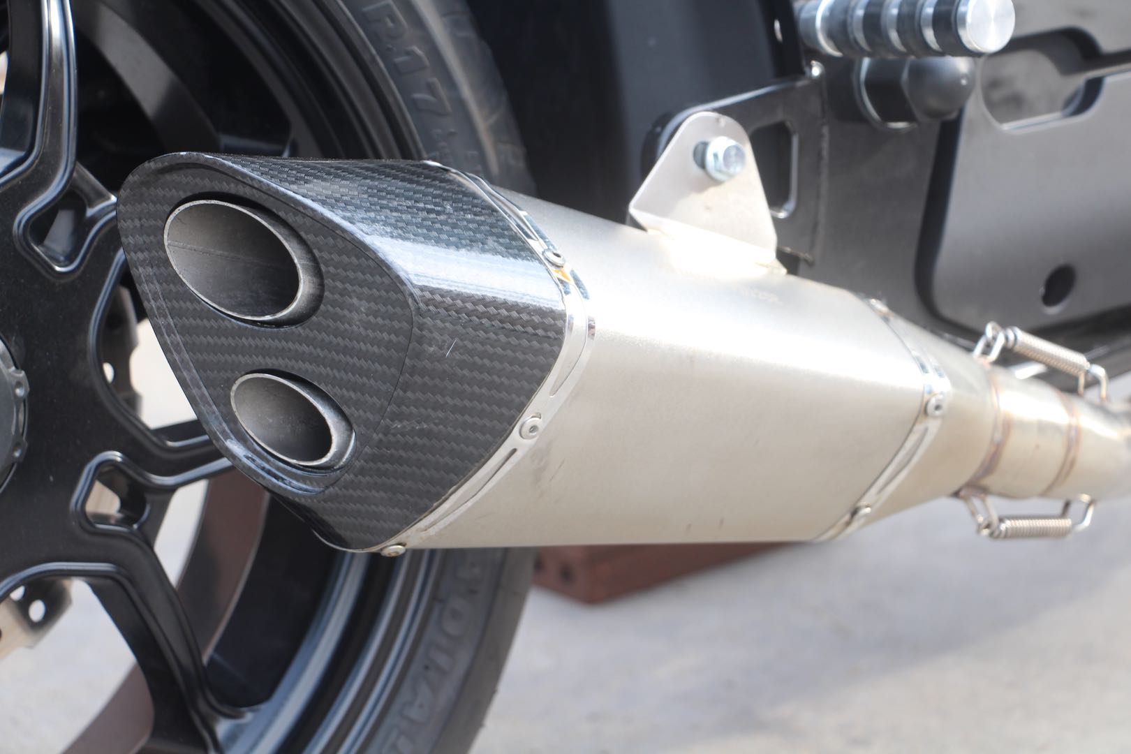 原廠就配備了全段不銹鋼排氣,尾喉還特意使用了水轉(zhuǎn)印的碳纖維裝飾,雙缸發(fā)動(dòng)機(jī)的排氣聲浪渾厚,省去了后期改裝的煩惱。
