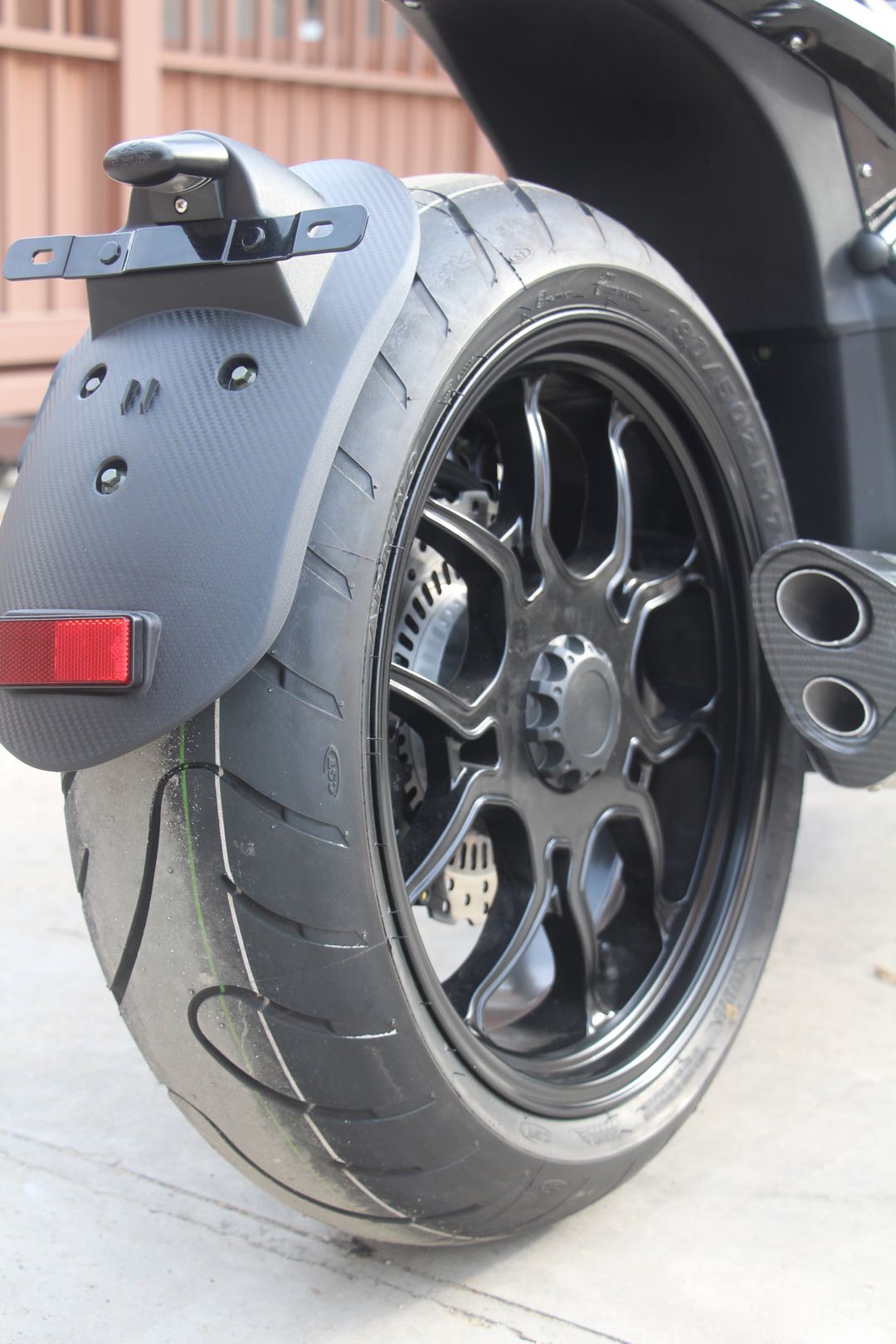 單搖臂的輪轂非常漂亮,190的寬大后視覺沖擊力很強(qiáng),后擋泥板采用類似碳纖維紋理的設(shè)計(jì),能夠營(yíng)造出一定的檔次感。