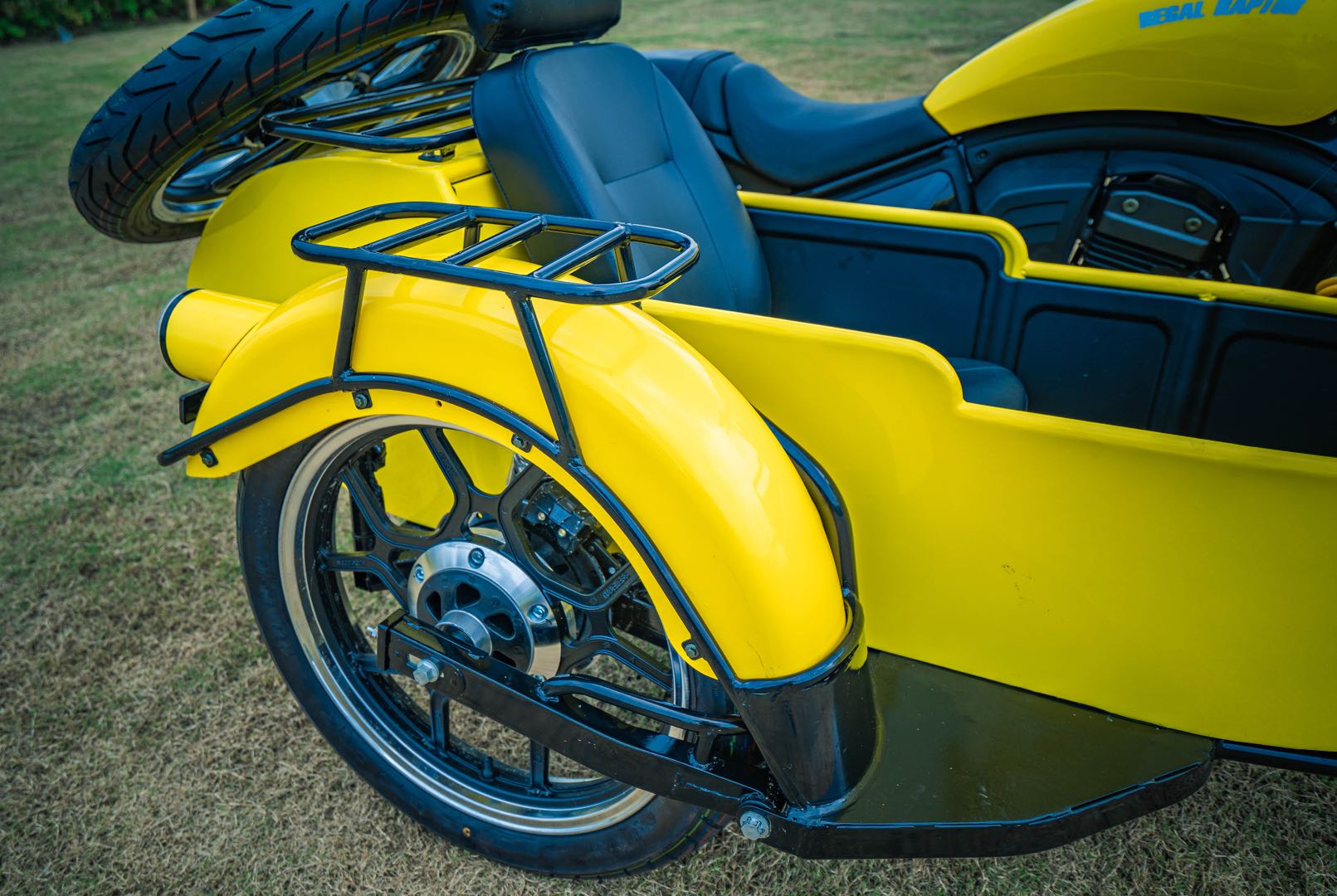 因?yàn)檐嚿硇揲L(zhǎng),所以邊斗的面積也很大,寬大的邊斗內(nèi)部采用塑料內(nèi)飾包裹,更為整潔美觀,超大的邊斗座椅堪比汽車級(jí)別,全尺寸的備胎能夠讓前輪和邊輪互換使用。