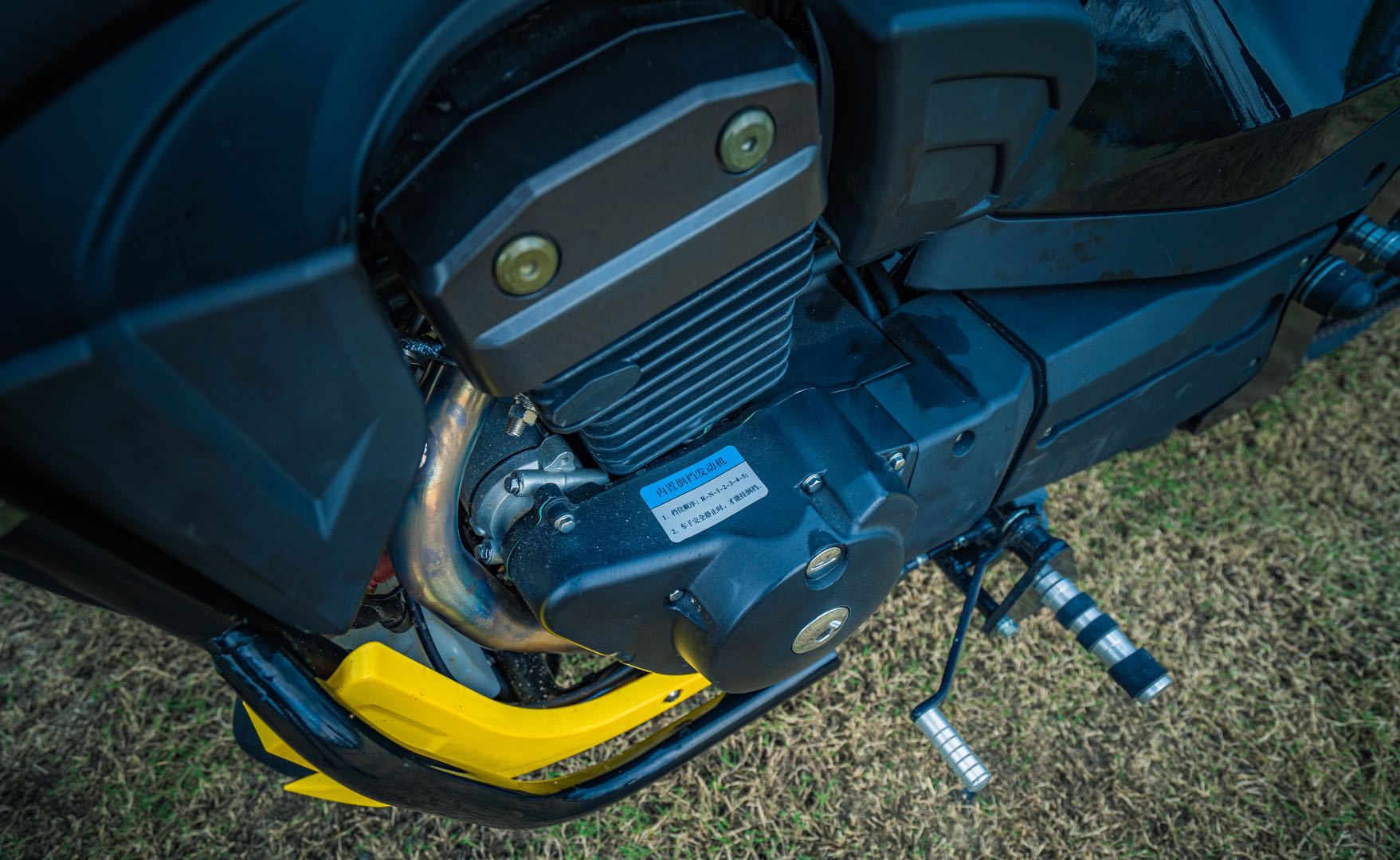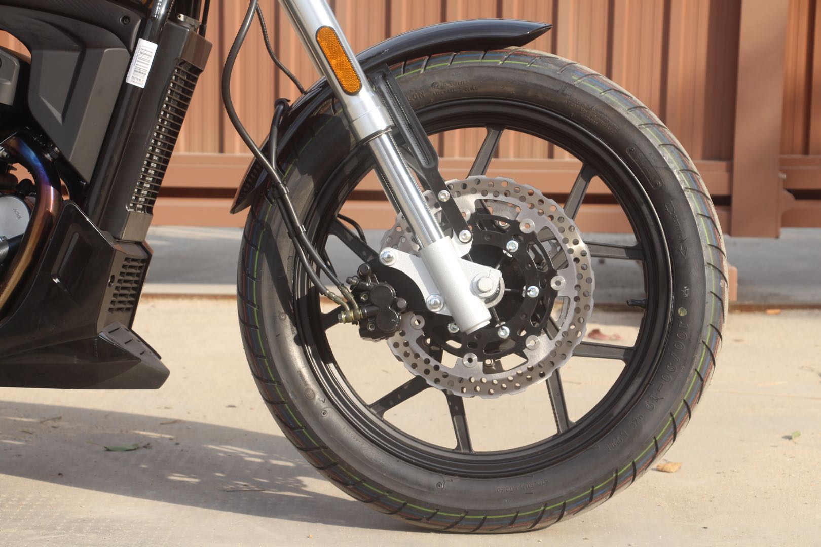 倒立式前叉,單浮動(dòng)前剎車盤,后單碟剎,配合CBS前后聯(lián)動(dòng)剎車裝置,除了能夠滿足日常使用需求,還能夠輕松玩轉(zhuǎn)“三輪”漂移的動(dòng)作。