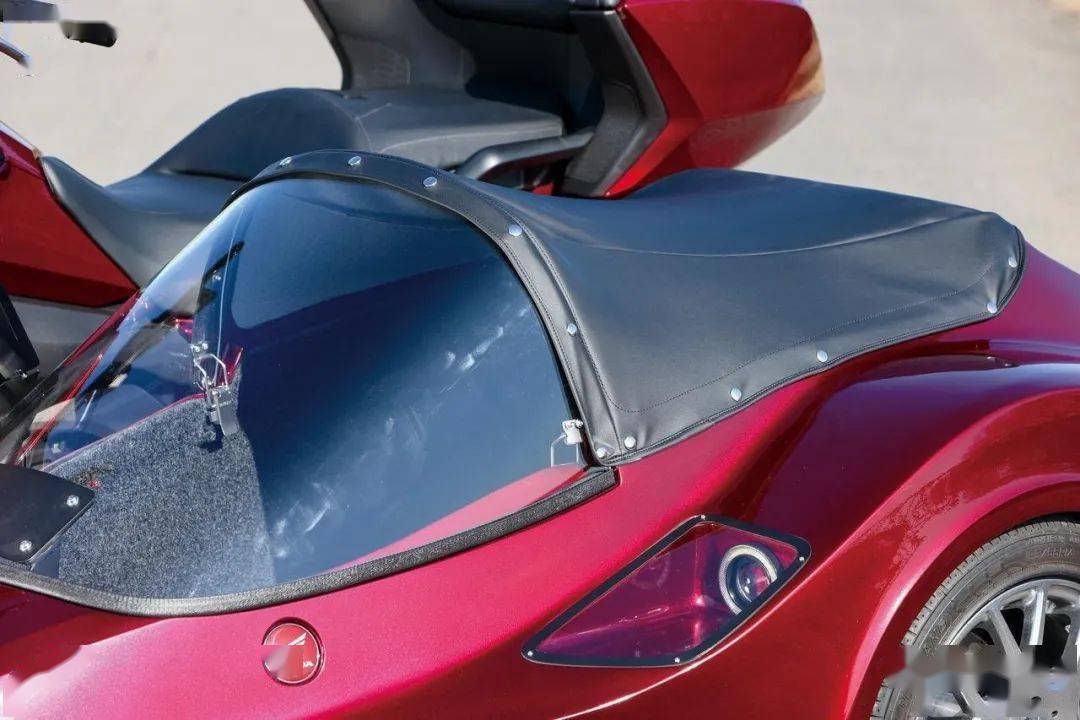 車身上許多細(xì)節(jié)也采用和HonDA GOLDWING相同的設(shè)計(jì)語(yǔ)匯,像是車尾燈使用和GOLDWING同樣風(fēng)格的環(huán)形LED尾燈、車側(cè)輪拱線與GOLDWING車尾相互呼應(yīng),此外邊車的風(fēng)鏡高度,也能提供邊車乘客相當(dāng)不錯(cuò)的擋風(fēng)效果,坐在邊車上路的感覺(jué),就像是坐在一臺(tái)敞篷跑車內(nèi)一樣暢快。