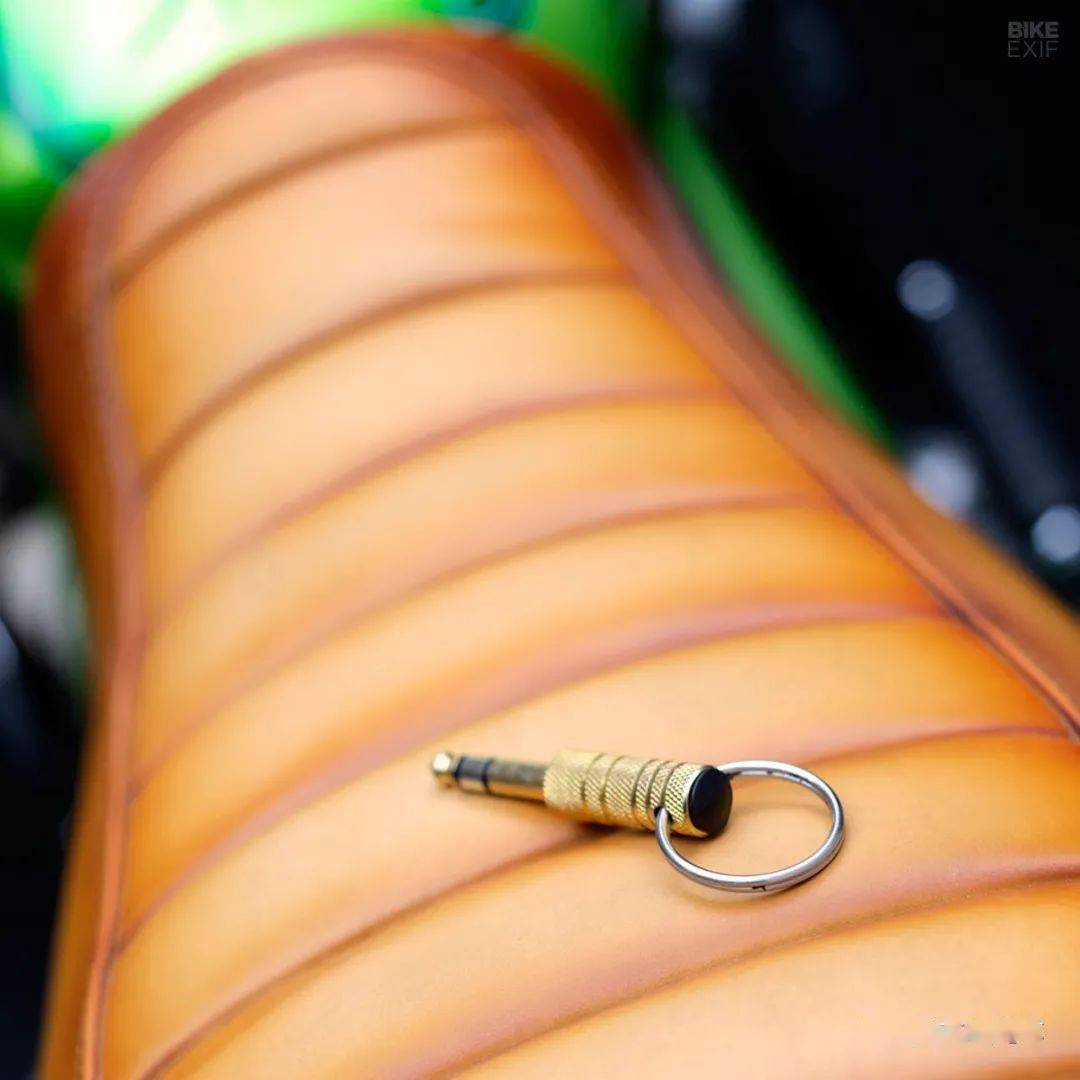 但在這部車上我最喜歡的是它的鑰匙創(chuàng)意,一把由電吉他插頭改裝的鑰匙簡(jiǎn)直是酷的讓人忍不住大叫一聲“你真是個(gè)人才!”如果你正好玩音樂(lè),把電音設(shè)備上的公母插頭做成啟動(dòng)摩托車的工具,你想想每次啟動(dòng)摩托車時(shí)是不是都有一種調(diào)試設(shè)備要開(kāi)演唱會(huì)的感覺(jué)!
