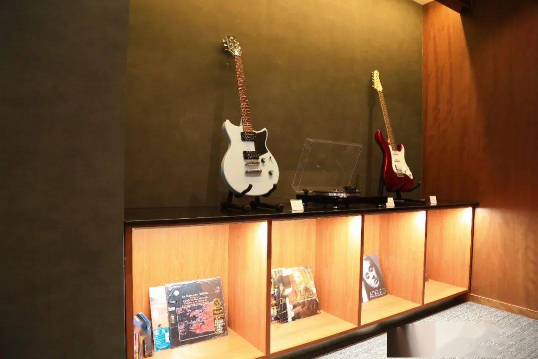 在龐大的店面中,還隱藏著一個極富藝術氣息的小空間,里面陳列著雅馬哈的各式音響和吉他,關上門,放一張黑膠唱片,擺弄著手中的吉他……也只有雅馬哈的旗艦店能讓你感受到如此與眾不同的體驗。