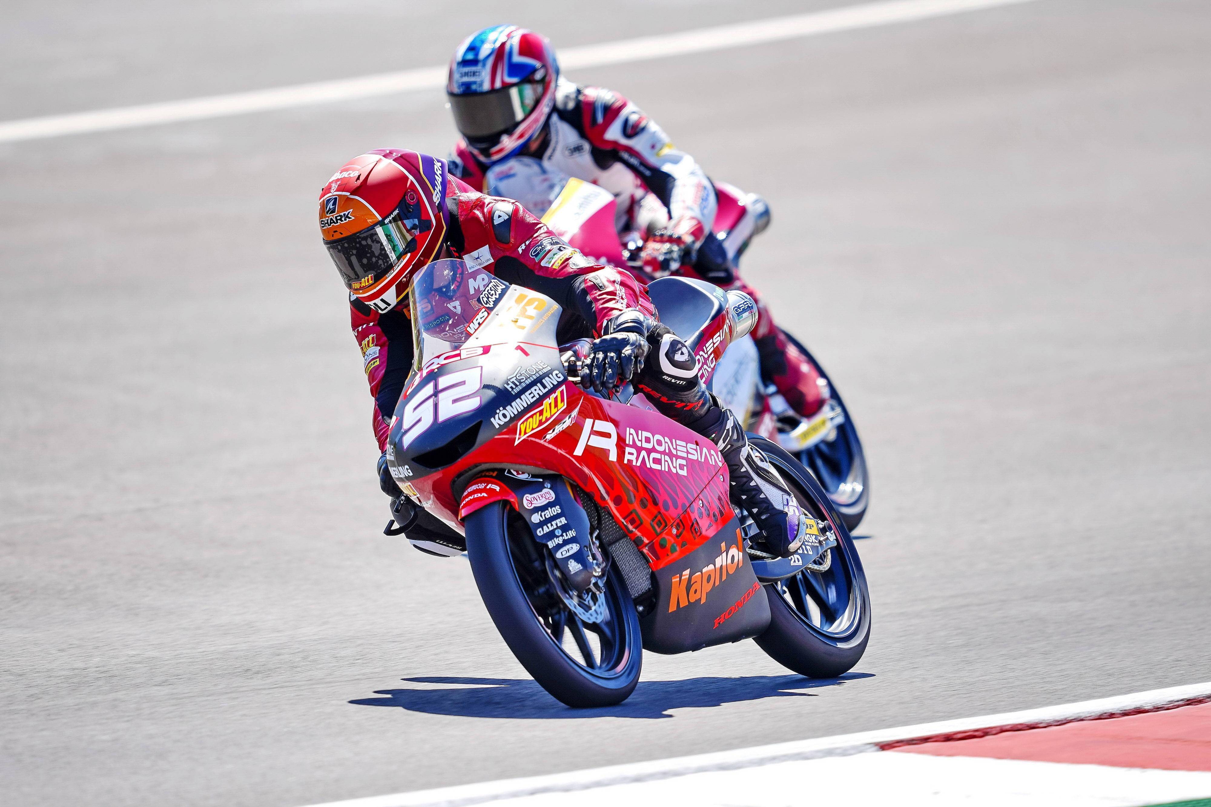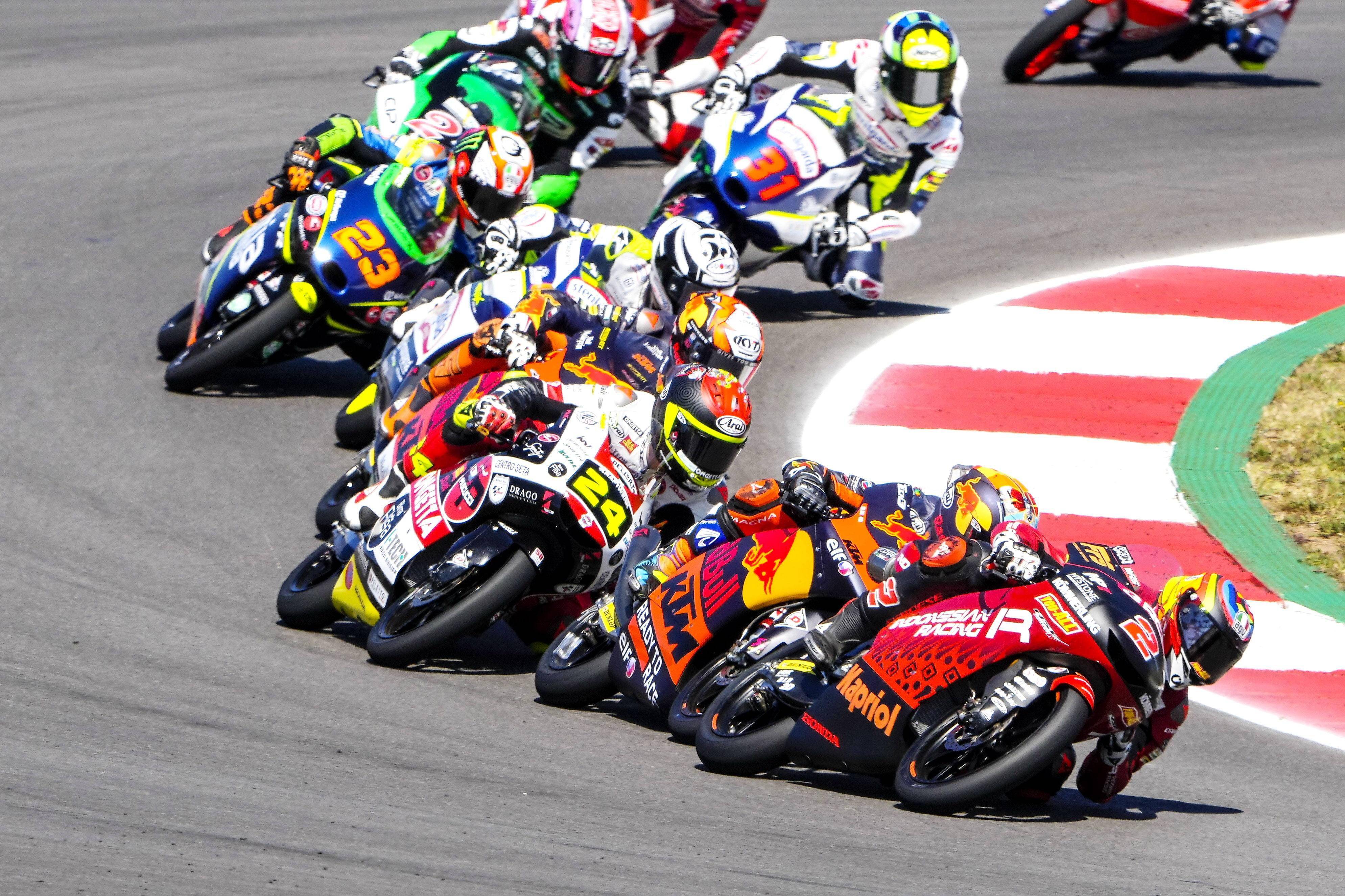 Moto3 級(jí)別的賽程為 21 圈、折合約 96.432 公里。