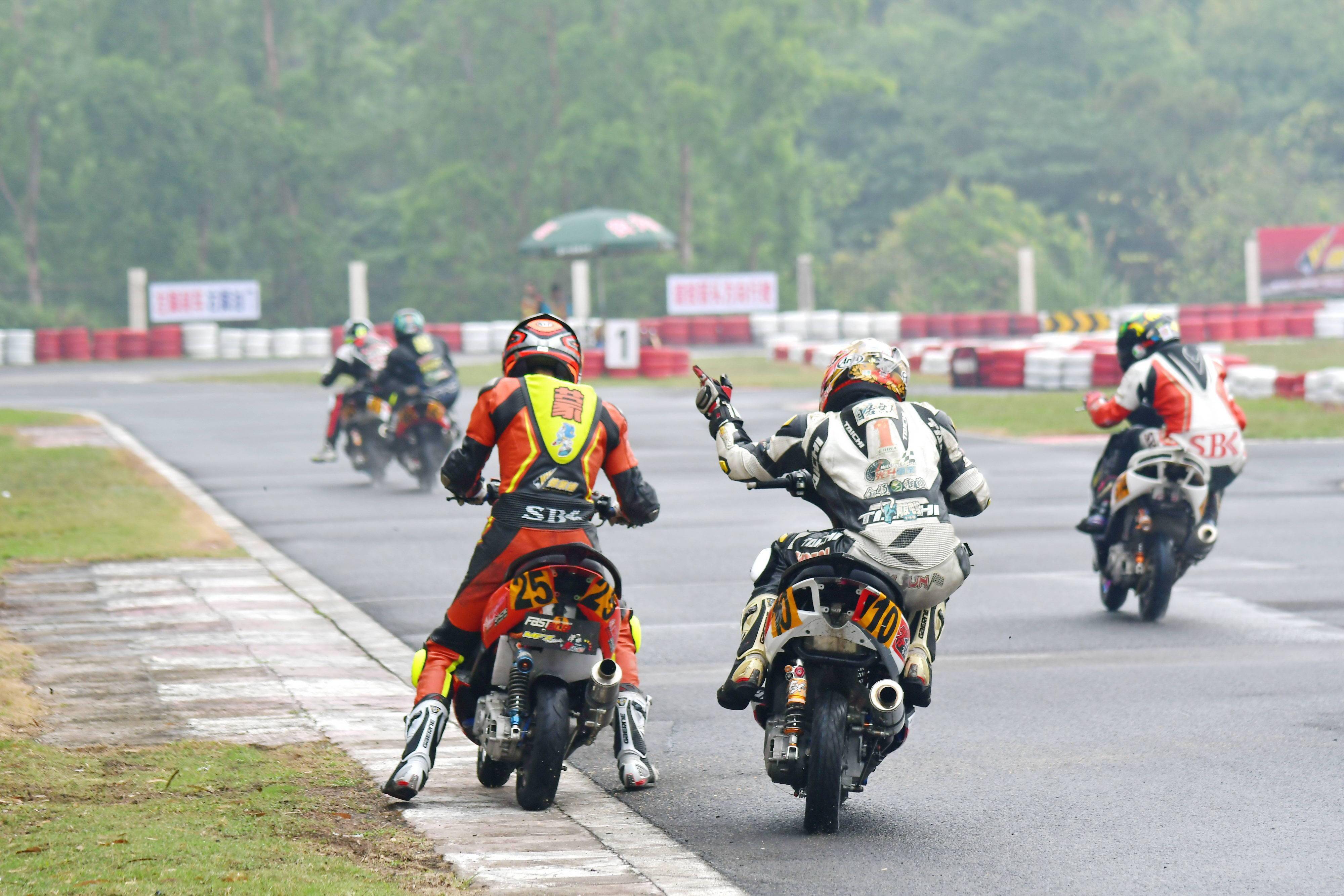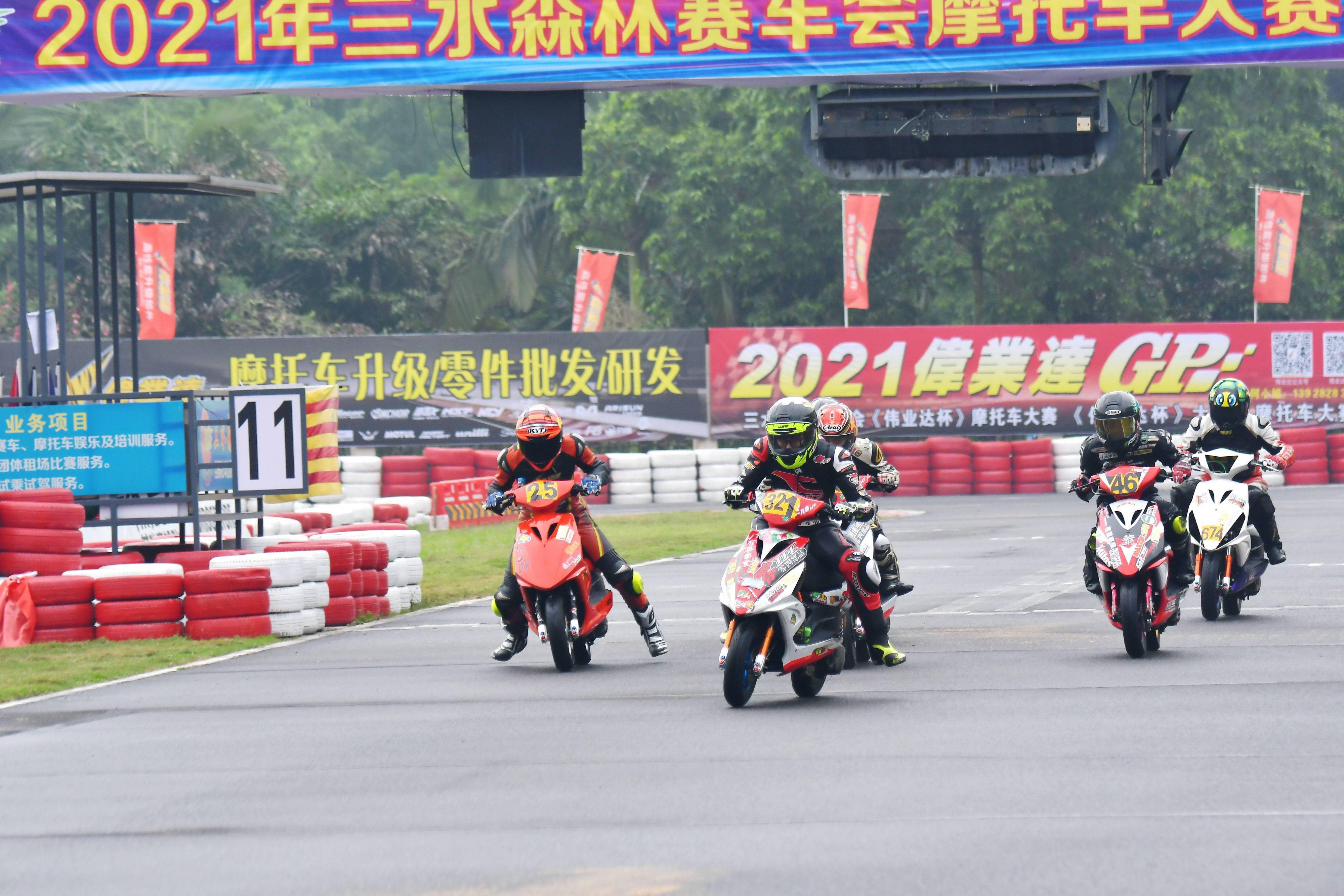 下面的圖片,2021 偉業(yè)達(dá) GP、三水森林賽車會(huì)摩托車大賽 偉業(yè)達(dá)杯 第一回合,Arisun 艾瑞森輪胎改裝踏板 150cc 公開組的比賽現(xiàn)場。