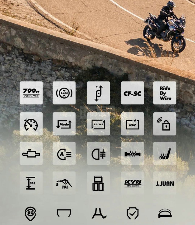 配置方面CB500X在800MT面前更是顯得相形見(jiàn)絀,本田CB500X能夠拿得出手的配置只有,液晶儀表、滑動(dòng)離合、前后ABS、NSSIN卡鉗這些。春風(fēng)800MT目前已知的配置有:牽引力控制、彎道ABS、雙向快排、滑動(dòng)離合、電子油門(mén)、定速巡航、全彩儀表、自動(dòng)大燈、手把加熱、座椅加熱、KYB避震、西互卡鉗等等。