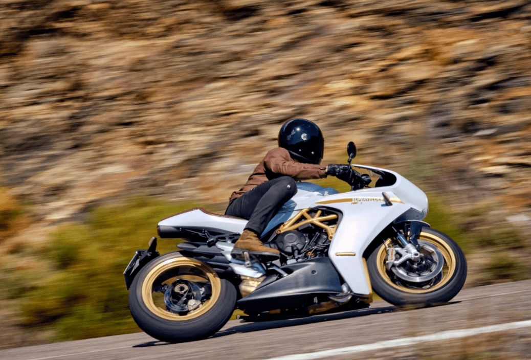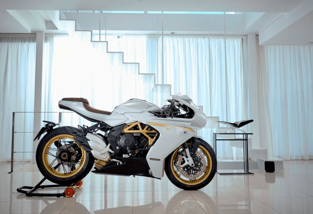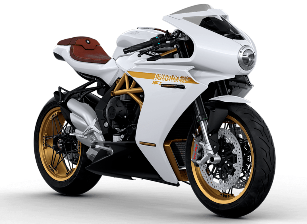 這次新發(fā)布的Superveloce S相比于同車系主要體現(xiàn)在外觀上的不同。車身珍珠白烤漆搭配金色的車架,車身上的涂裝和輪轂也采用了非常富貴的金色,同時輪轂也采用了更加復(fù)古的輻條輪轂。坐墊還使用了棕色的Alcantara麂皮打造,還可以換裝Race套件里的駝峰蓋,讓這款車更具Cafe Racer風(fēng)格。整臺車完全可以用絕美、驚艷來形容,23600歐元的售價也襯托出 SuperveloceS尊貴的氣息。愛......愛不起。