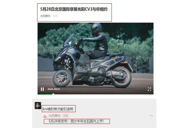 今天上午,光陽(yáng)官宣了一則消息,確認(rèn)了CV3倒三輪和KRV小踏板,會(huì)在5月28日的北京車展發(fā)布。去年年底,光陽(yáng)發(fā)布的四款新車,除了F9電摩之外,其他三款已經(jīng)悉數(shù)進(jìn)入內(nèi)地市場(chǎng),另一款則是已經(jīng)上市的賽艇350,總的來說光陽(yáng)在內(nèi)地市場(chǎng),新車推進(jìn)速度還是相當(dāng)快的。
