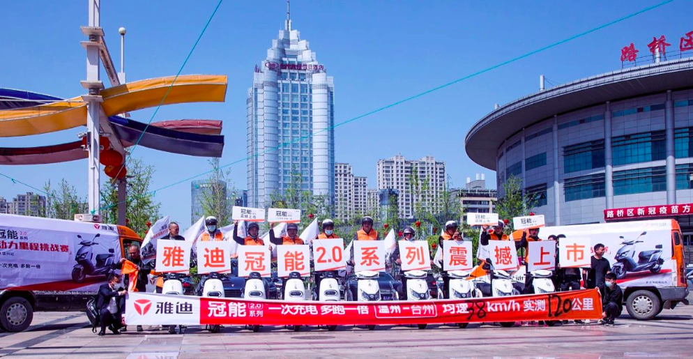 2020年,雅迪開始推出冠能系列,推出TTFAR7級增程系統(tǒng),打出一次充電,多跑一半的口號,并且在全國啟動冠能中國行里程挑戰(zhàn)賽,意欲全面引領(lǐng)行業(yè)。