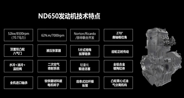 賽科龍RX6之所以敢把價格定到這個位置,其實和它所搭載的這臺雙缸發(fā)動機(jī)有很大關(guān)系,這臺發(fā)動機(jī)是宗申與諾頓共同研發(fā)的,想賣個好價錢其實也在情理之中。這臺發(fā)動機(jī)實際排量649.5cc,最大功率52kW(70.7Ps)/8500rpm,最大扭矩62Nm/7000rpm,并且搭配了滑動離合器。這組數(shù)據(jù)超過了目前國產(chǎn)同級別發(fā)動機(jī)的水平,甚至超過了川崎Versys 650(65Ps/61Nm),這才是RX6定價的底氣所在。