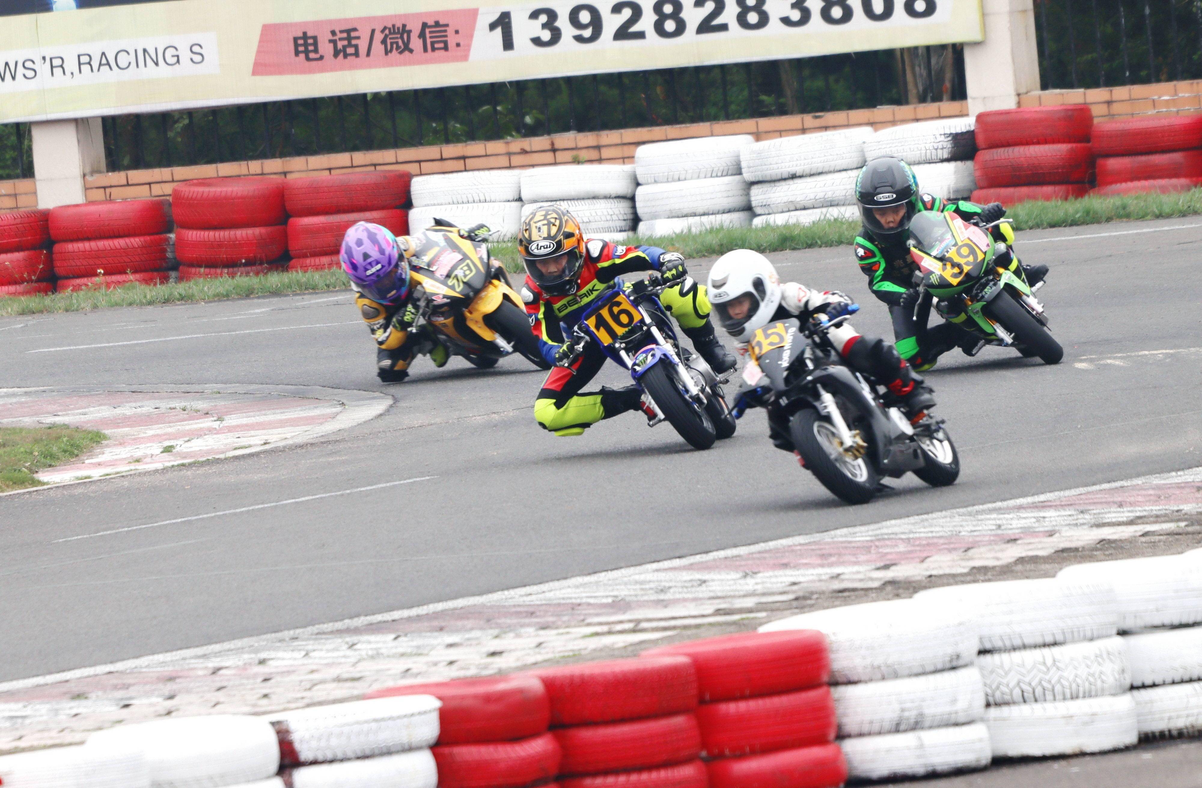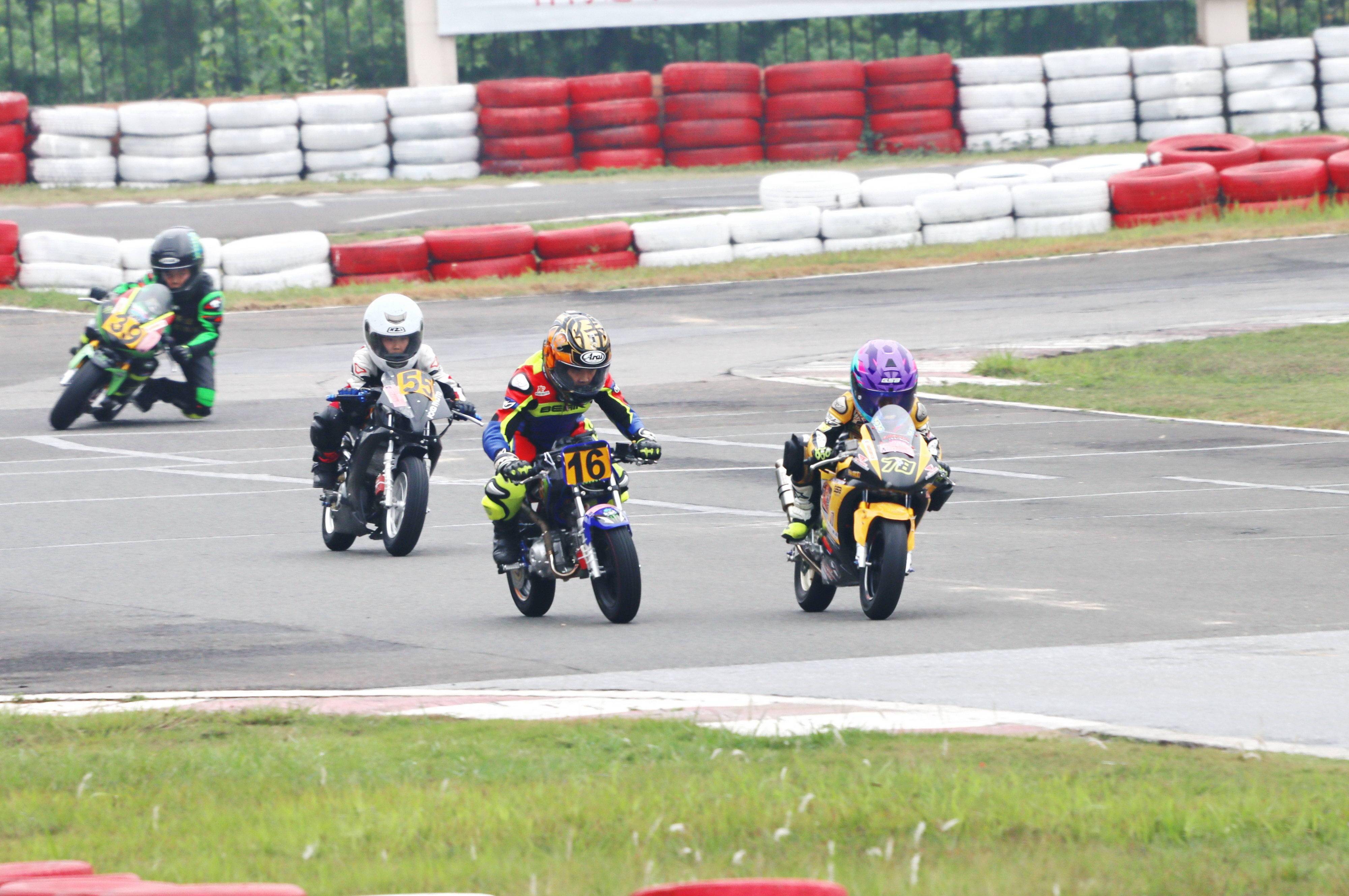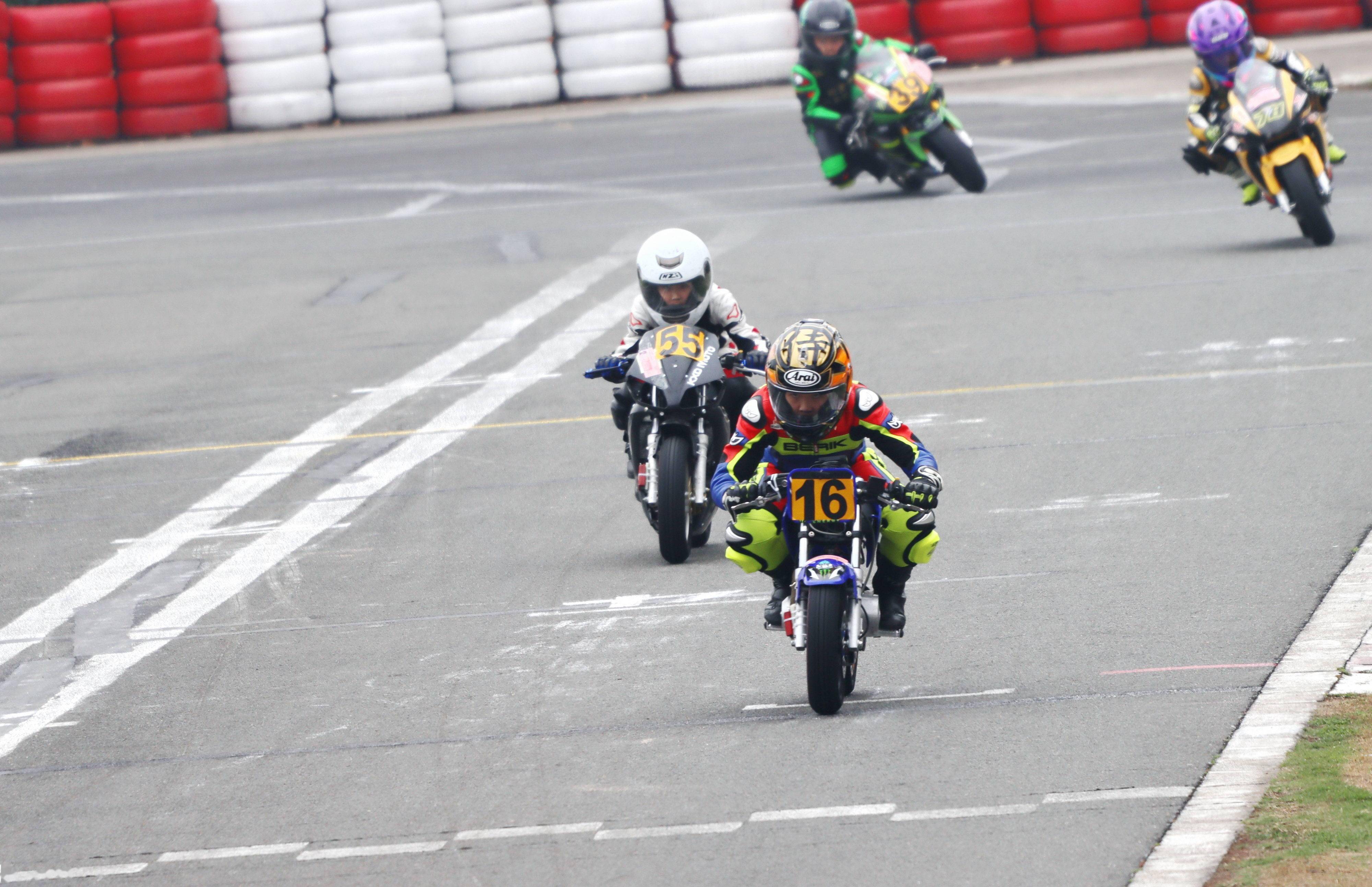 小童 A 組的比賽有七位車手參加。本組別所使用的賽車,基本的技術(shù)規(guī)則是使用風(fēng)四沖程單氣缸、兩氣閥,排氣量 90 cc 以下的發(fā)動機(jī),前后車輪的直徑在 10 英寸或以下。