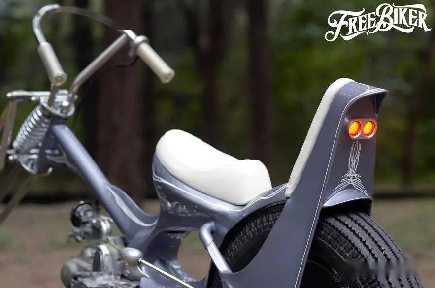 Wheelers Chop Shop賦予這部車的手工件還不只如此,充滿60年代精神的前輪、科幻感十足的把手、排檔頭和排氣管等,這些不僅都是源自于手工創(chuàng)作,更少不了對(duì)60年代美國(guó)Chopper文化所做的功課和高度到位的Sense。
