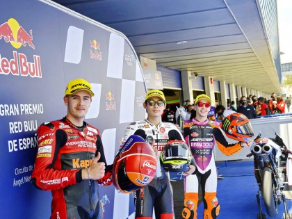 注:Moto3 里面,Q2 是決定正式比賽、前十八名車手起步排名位置的 “ 排位決賽 ”。在前三節(jié)自由練習(xí)中、圈速最快的前十二名車手可直接進(jìn)入 Q2 排位賽;其余車手則需要參與額外的 Q1,在 Q1 圈速最快的前六位車手、可以參加 Q2 排位賽。被排除在 Q2 以外的車手,正式比賽時(shí)的發(fā)車位置從第十九位開始,以三節(jié)自由練習(xí)里面、綜合圈速最好的時(shí)間決定具體位置。