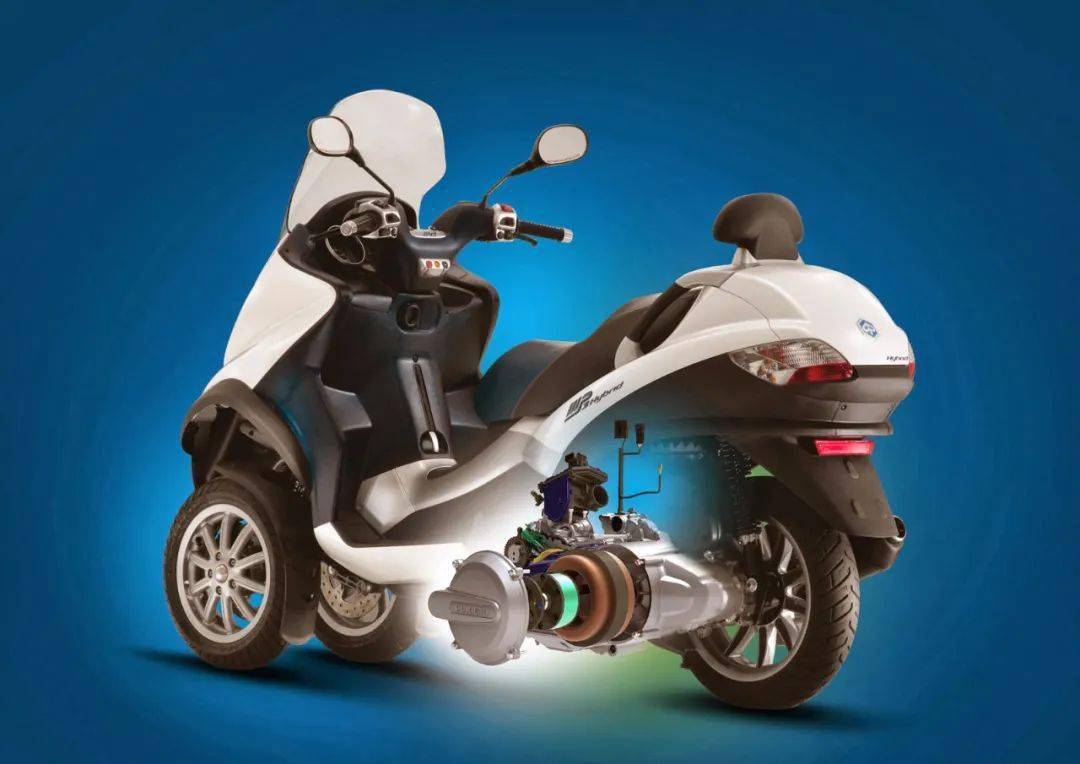 混合動力模式:當(dāng)騎手需要猛烈的加速時,發(fā)動機和電動機“并肩作戰(zhàn)”一同發(fā)力,大約由發(fā)動機出力60%、電動機出力40%,讓MP3 Hybrid的加速性能比常規(guī)的發(fā)動機提高了30%。