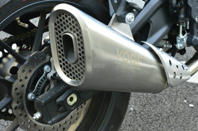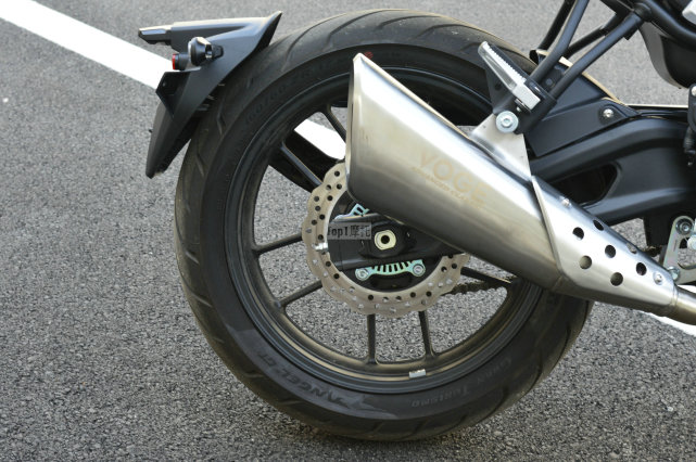 排氣管的造型是500AC比較具有爭議的地方,有人覺得這種喇叭狀的排氣不夠運動,而體積過大顯得有些突兀。雖然排氣管的做工和用料看上去比較精致,但是沒有300AC上那支短排氣好看。有人卻覺得這根排氣很有個性,外觀這種見仁見智的事情完全取決于個人喜好。廠家宣稱這種排氣管設(shè)計能夠提升中低速扭矩,不過有一說一這根排氣管的聲浪是真的不錯,如果你實在覺得難看后期也可以改裝的嘛!