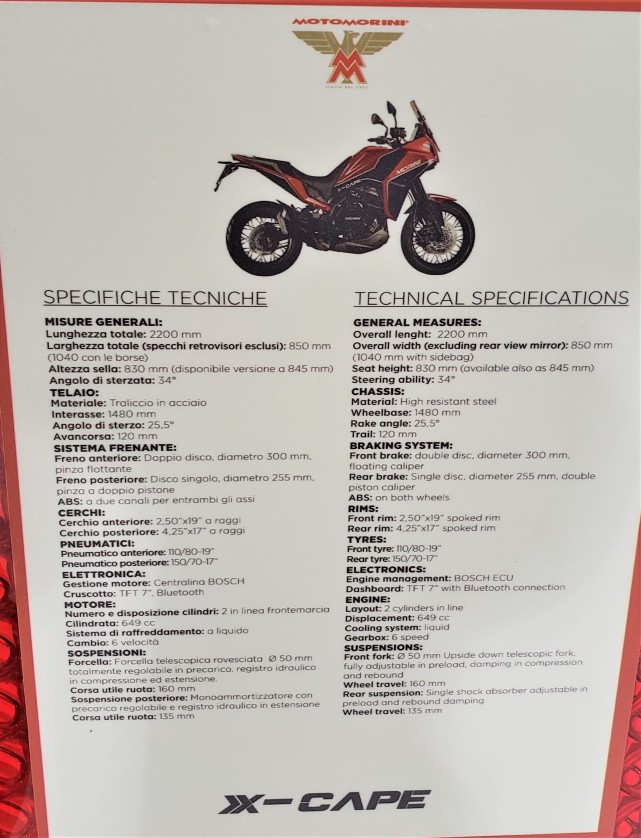 根據(jù)海報當中清晰的輪廓,可以確認這就是X-CAPE 650,這臺車早在2019年的米蘭車展就展出過。Moto Morini(摩托莫里尼)在歐洲已經有了近百年的造車歷史,ADV車型也有著達喀爾拉力賽的參賽經歷,這樣一個老牌企業(yè)設計制造ADV的底子相信也不會差。但是僅根據(jù)一個剪影很難判斷更多的細節(jié)和配置,其實在國外關于這臺車的息已經非常多了。